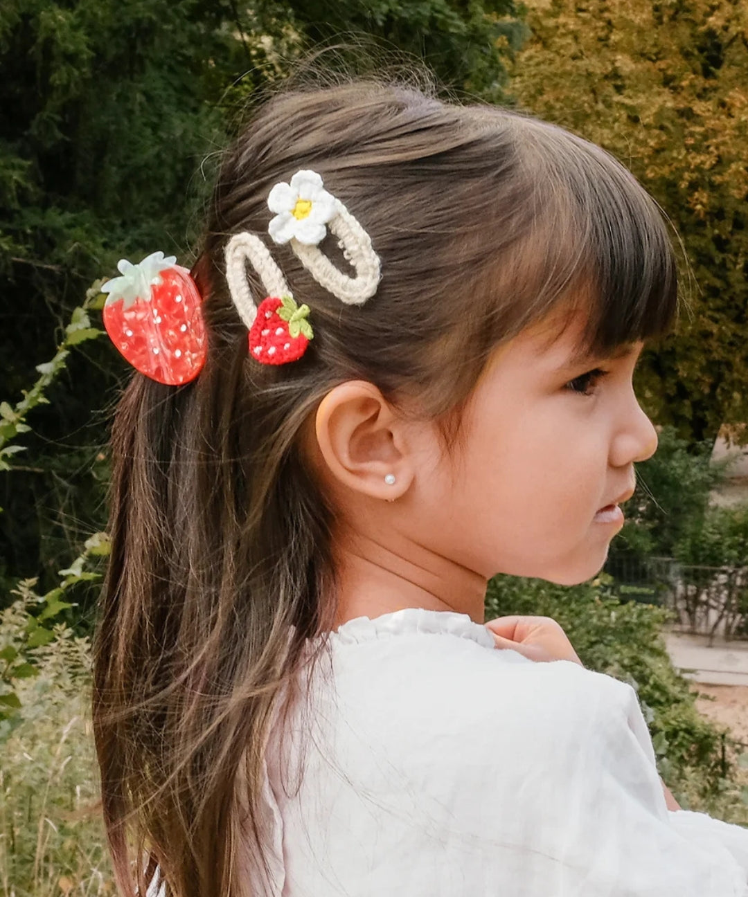 Crochet By M - Handmade Crochet Hair Clip Strawberry White Set