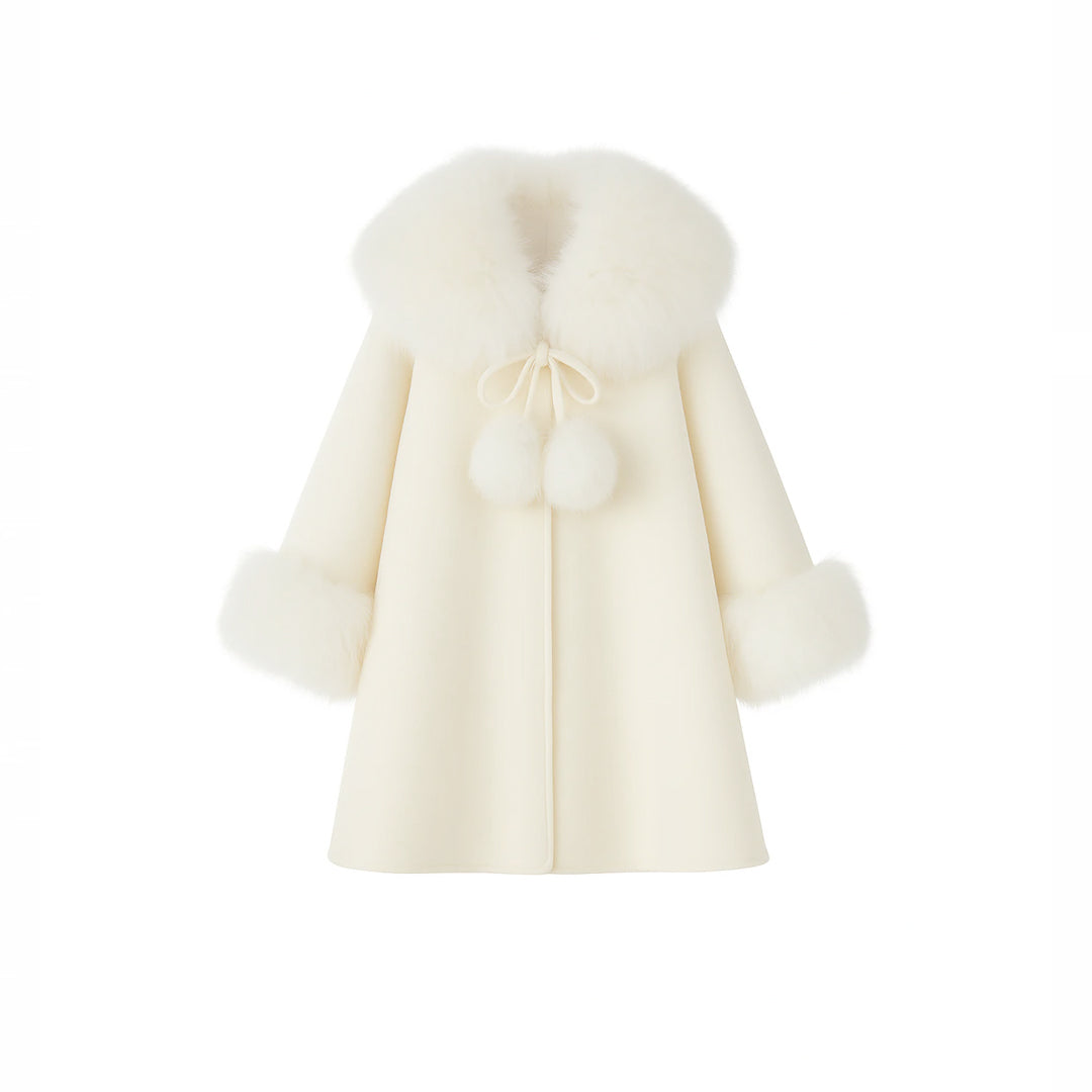 Bobble Babies :: Fur Collar Pom Coat Ivory