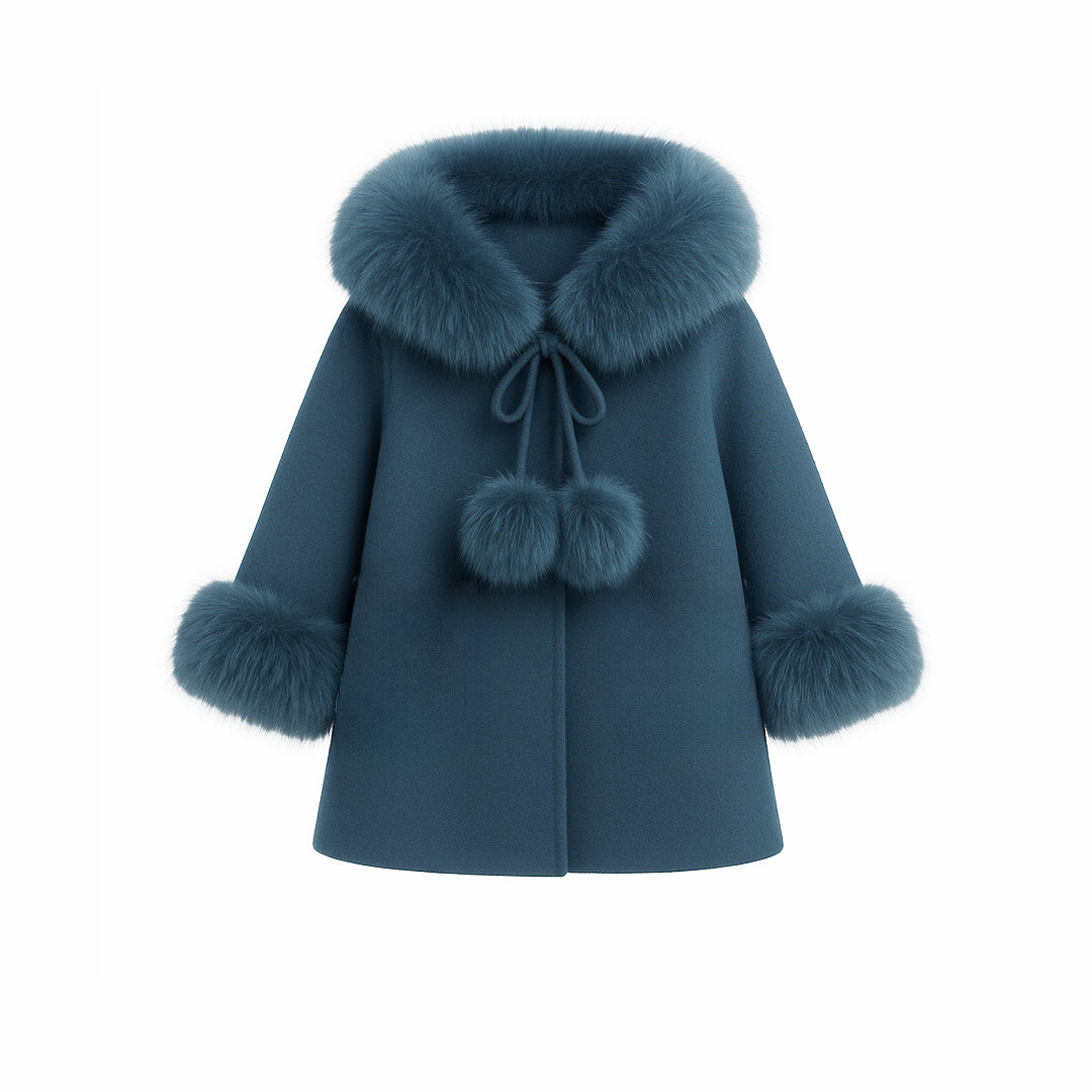 Bobble Babies :: Fur Collar Pom Coat Navy