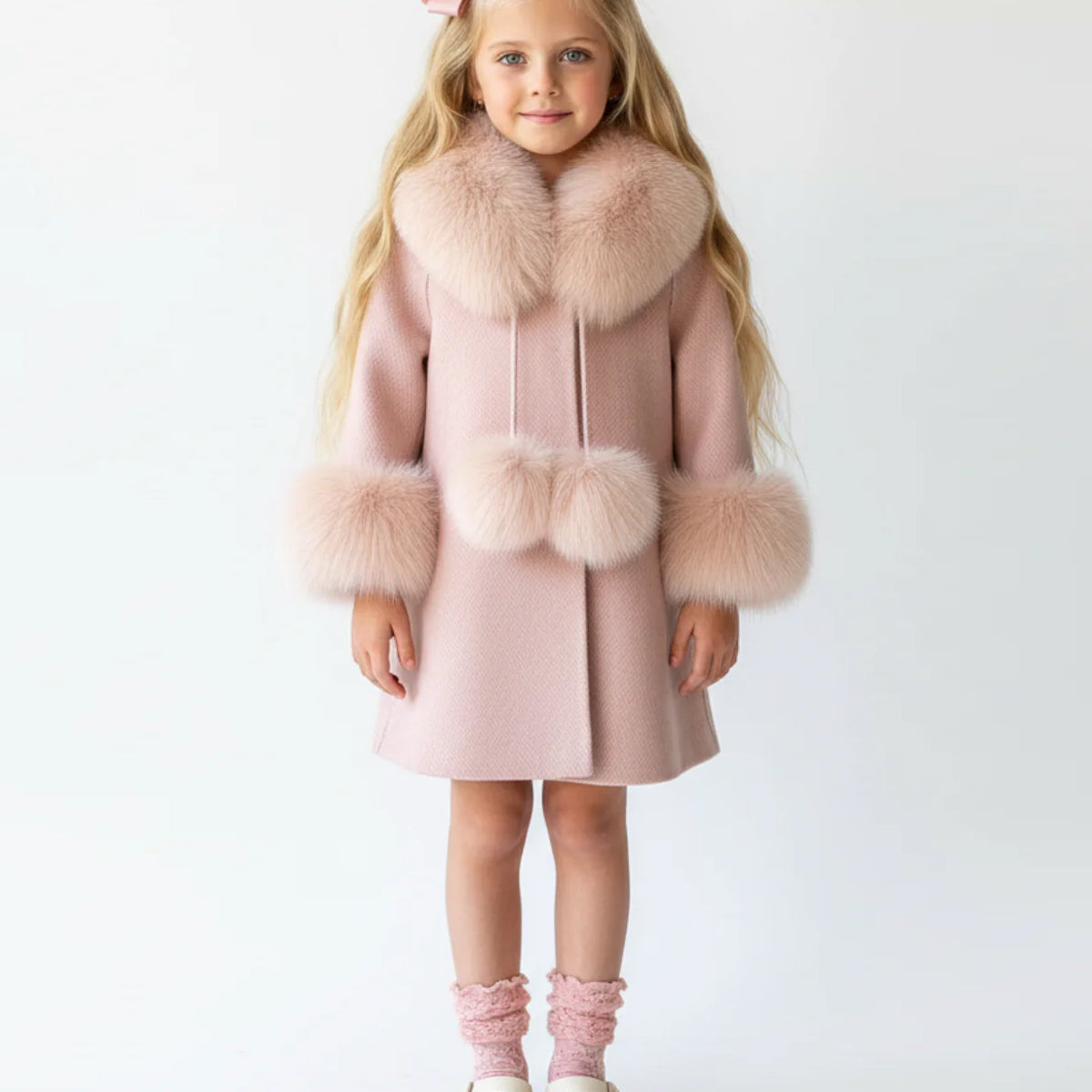 Bobble Babies :: Fur Collar Pom Coat Blush