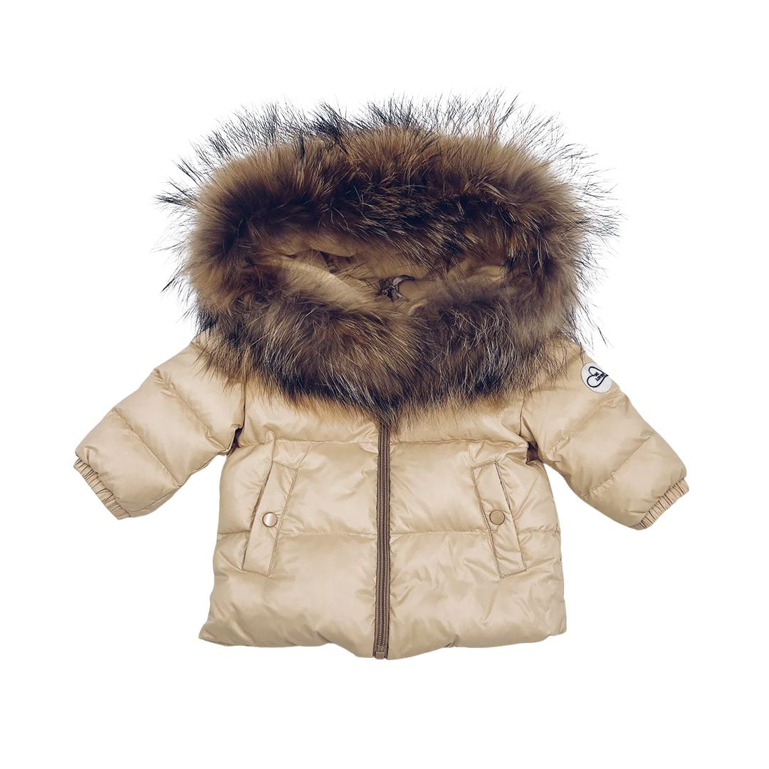 [Pre - Order] Mi Loves :: Luxurious Racoon Fur Trim Snowsuit Cream / Light Beige