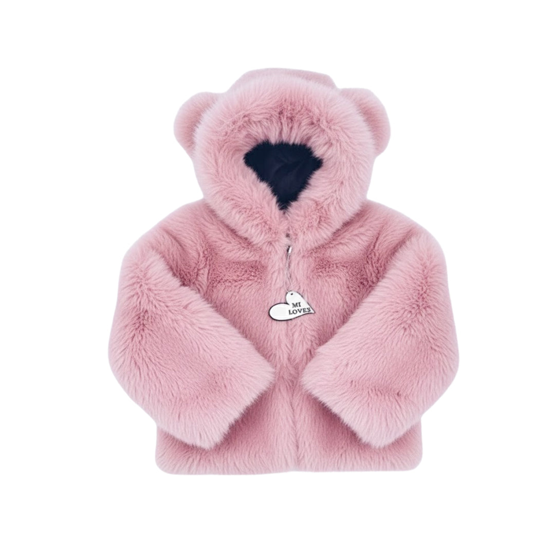 [Pre - Order] Mi Loves :: Racoon Fur Trim Puff Jacket Pink - 무광