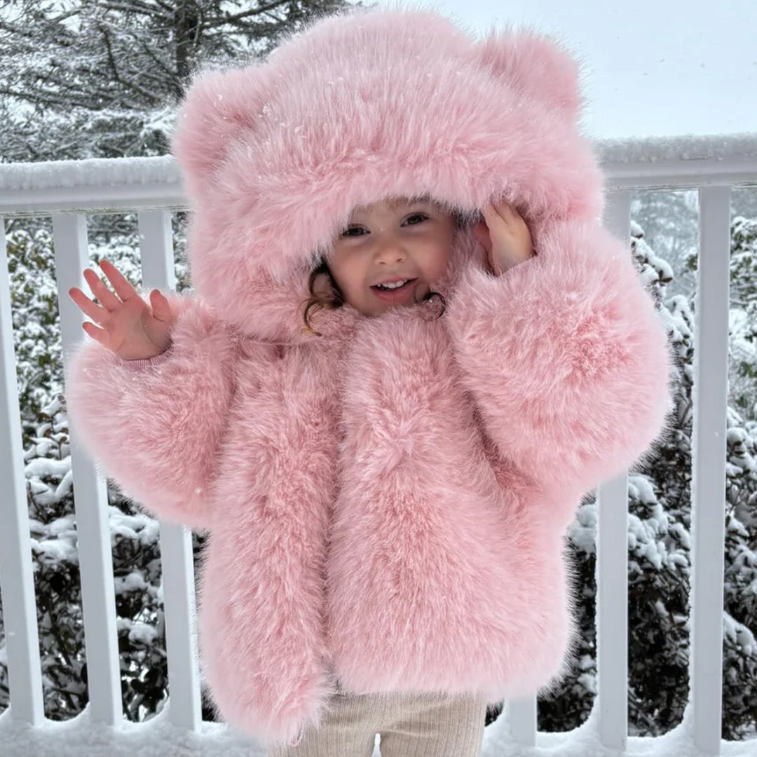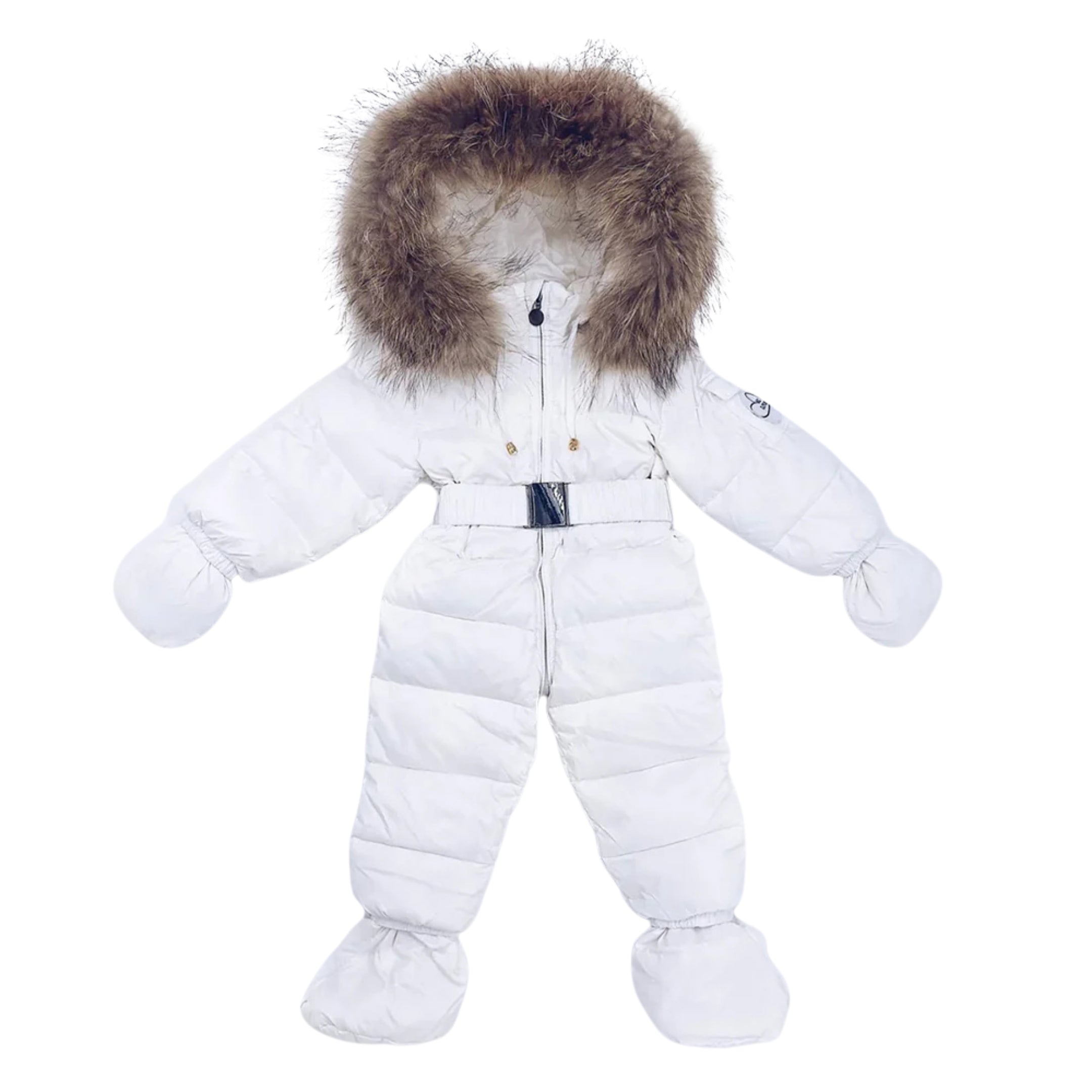 [Pre - Order] Mi Loves :: Luxurious Racoon Fur Trim Snowsuit White With Brown Fur