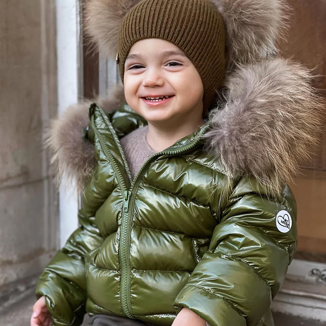 [Pre - Order] Mi Loves :: Luxurious Racoon Fur Trim Puff Jacket in Khaki Green