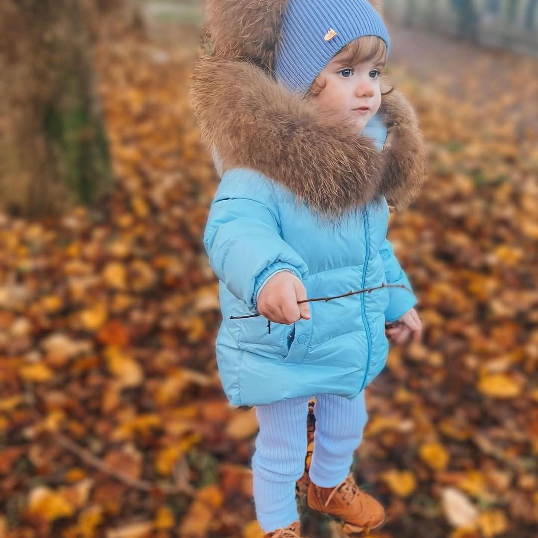 [Pre - Order] Mi Loves :: Racoon Fur Trim Puff Jacket in Blue