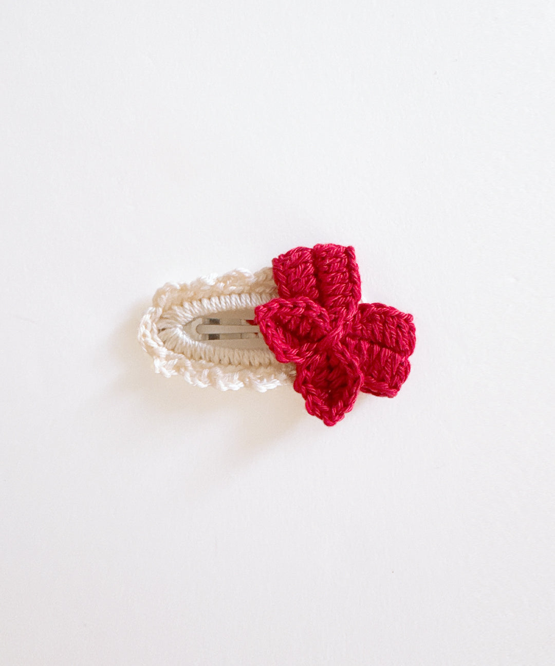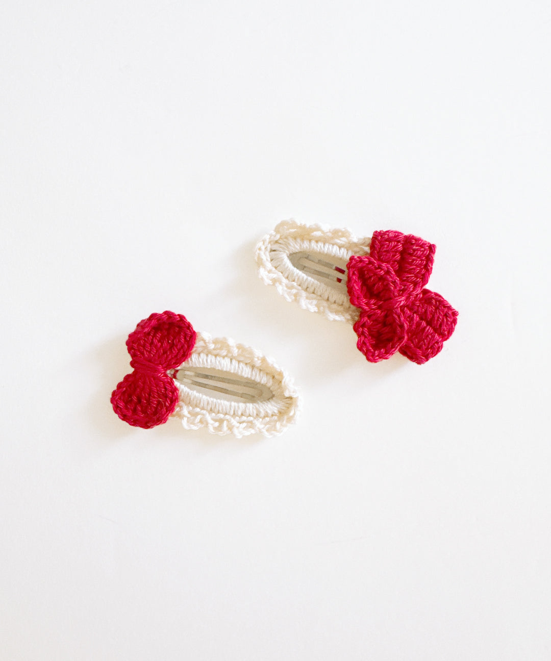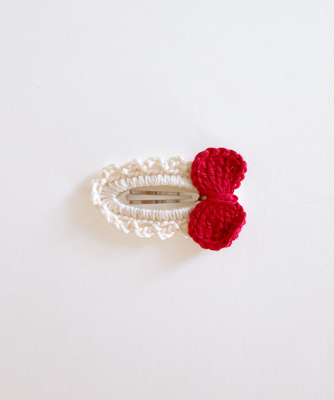 Crochet By M - Handmade Crochet Hair Clip Red Small Bow