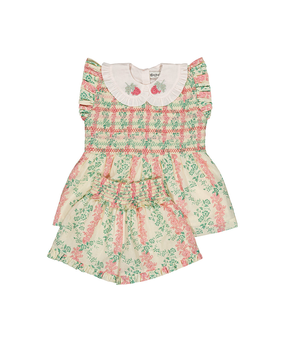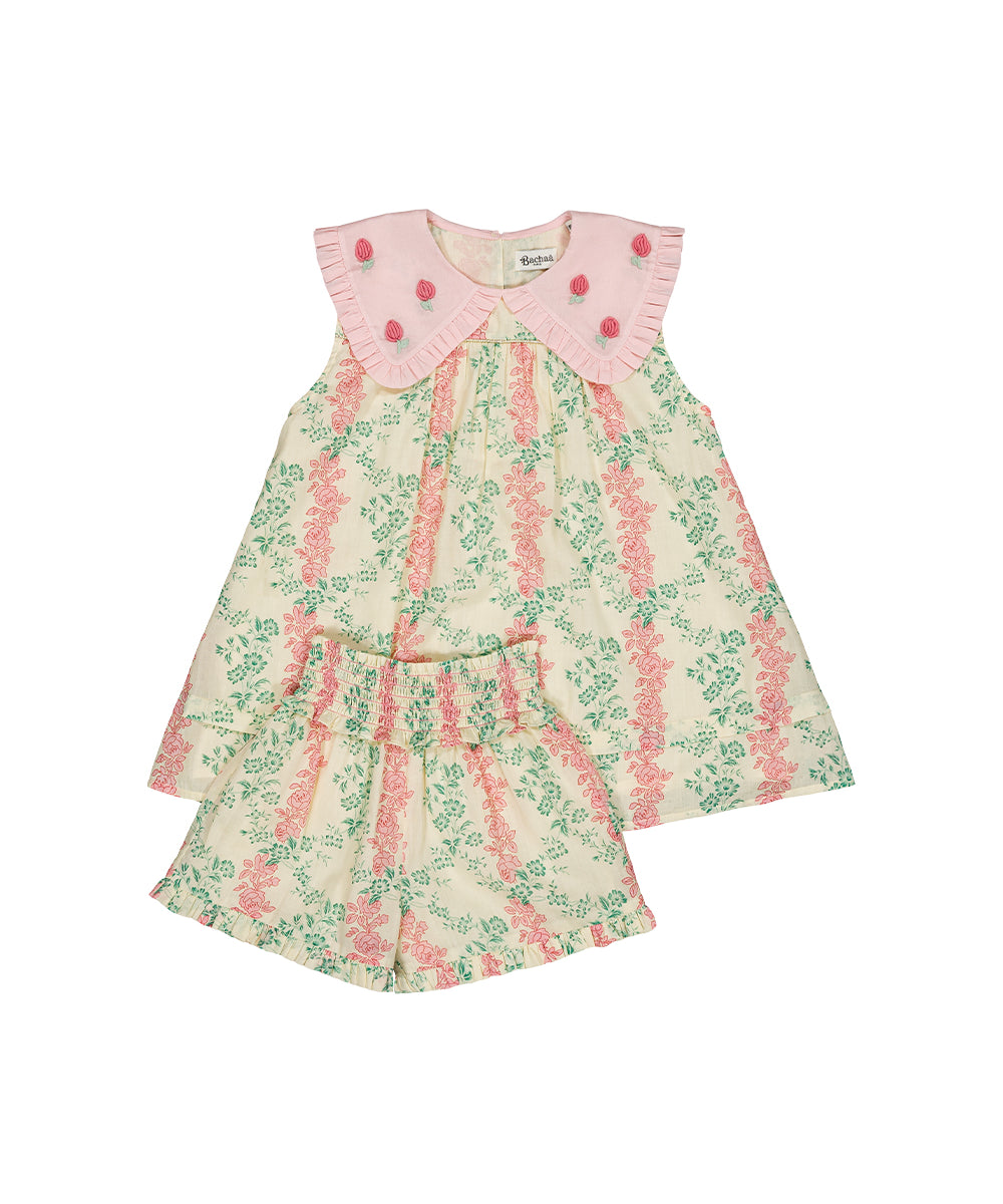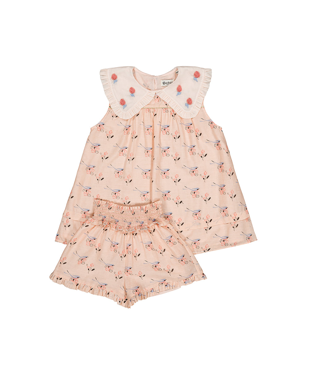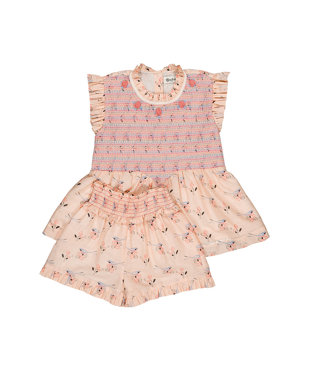 Bachaa - Buttercream Blouse & Short Set Bird Print