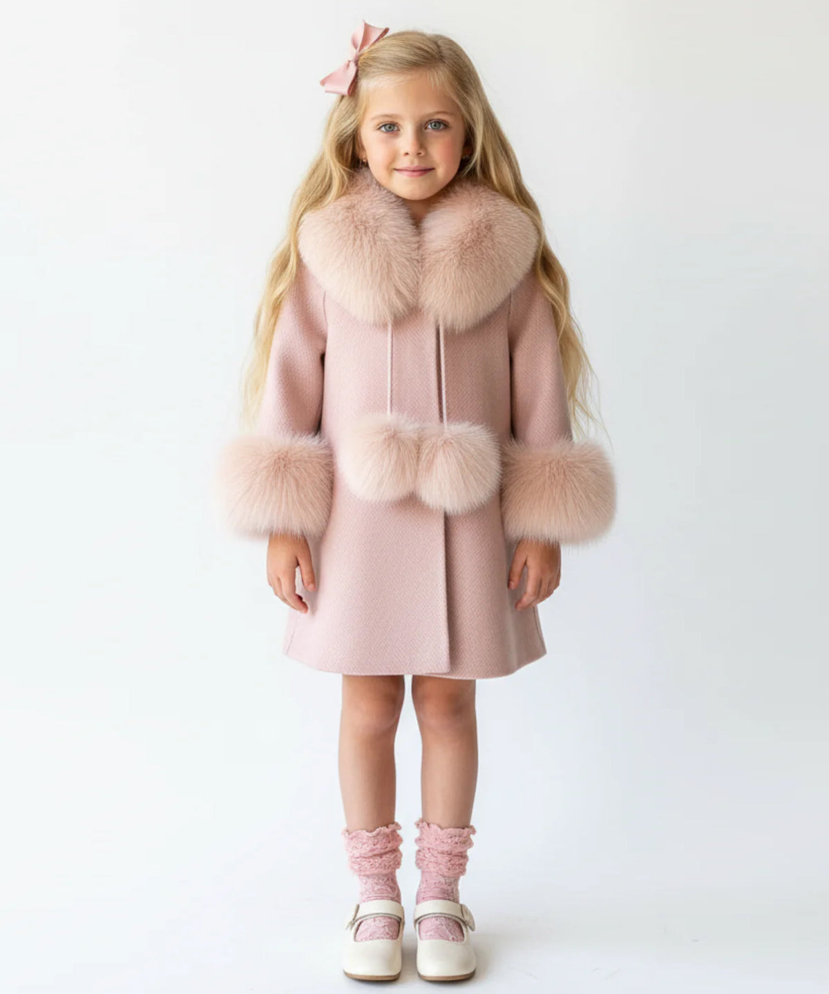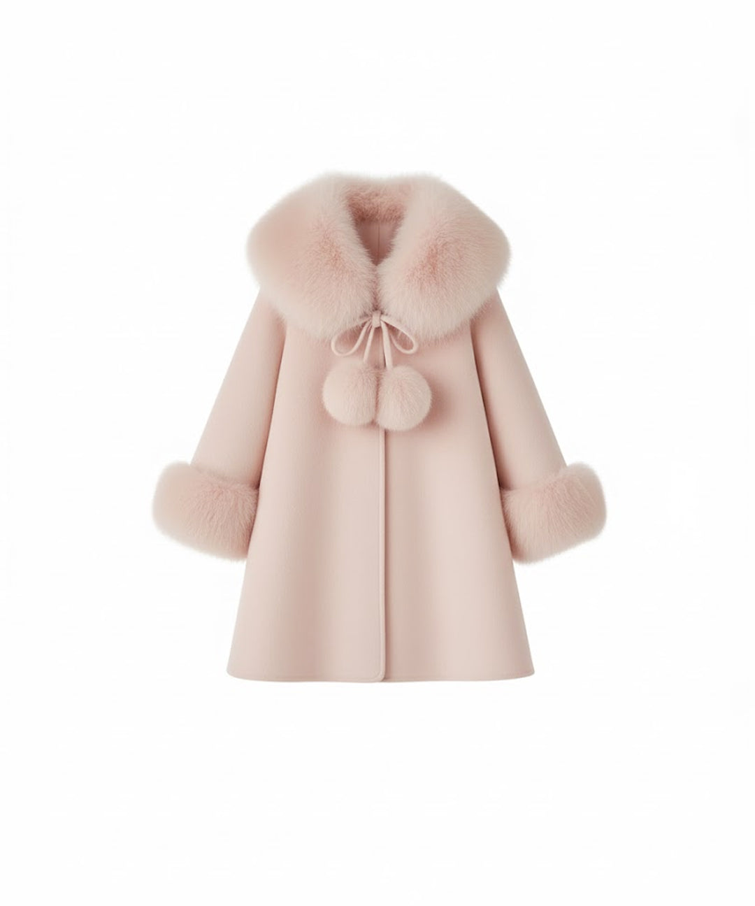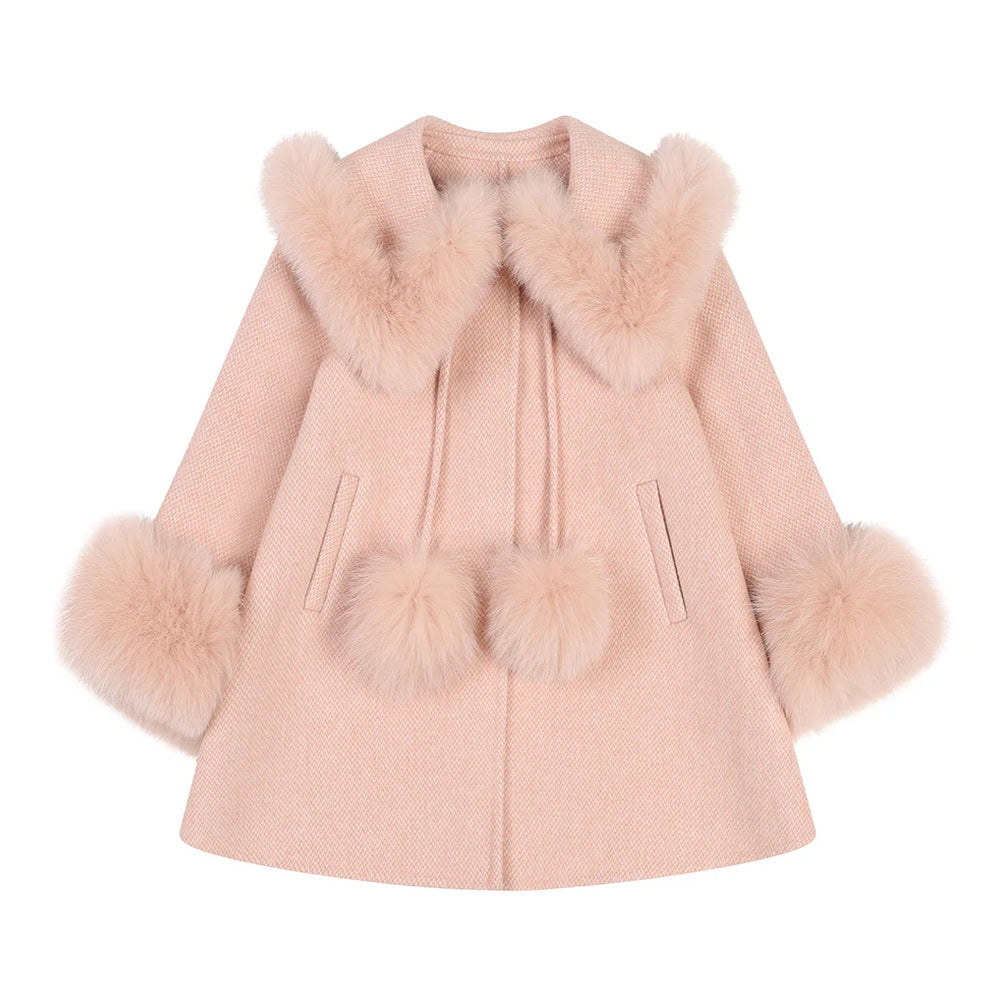Bobble Babies - Fur Collar Pom Coat Blush