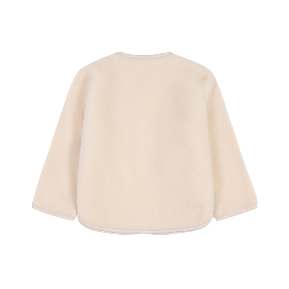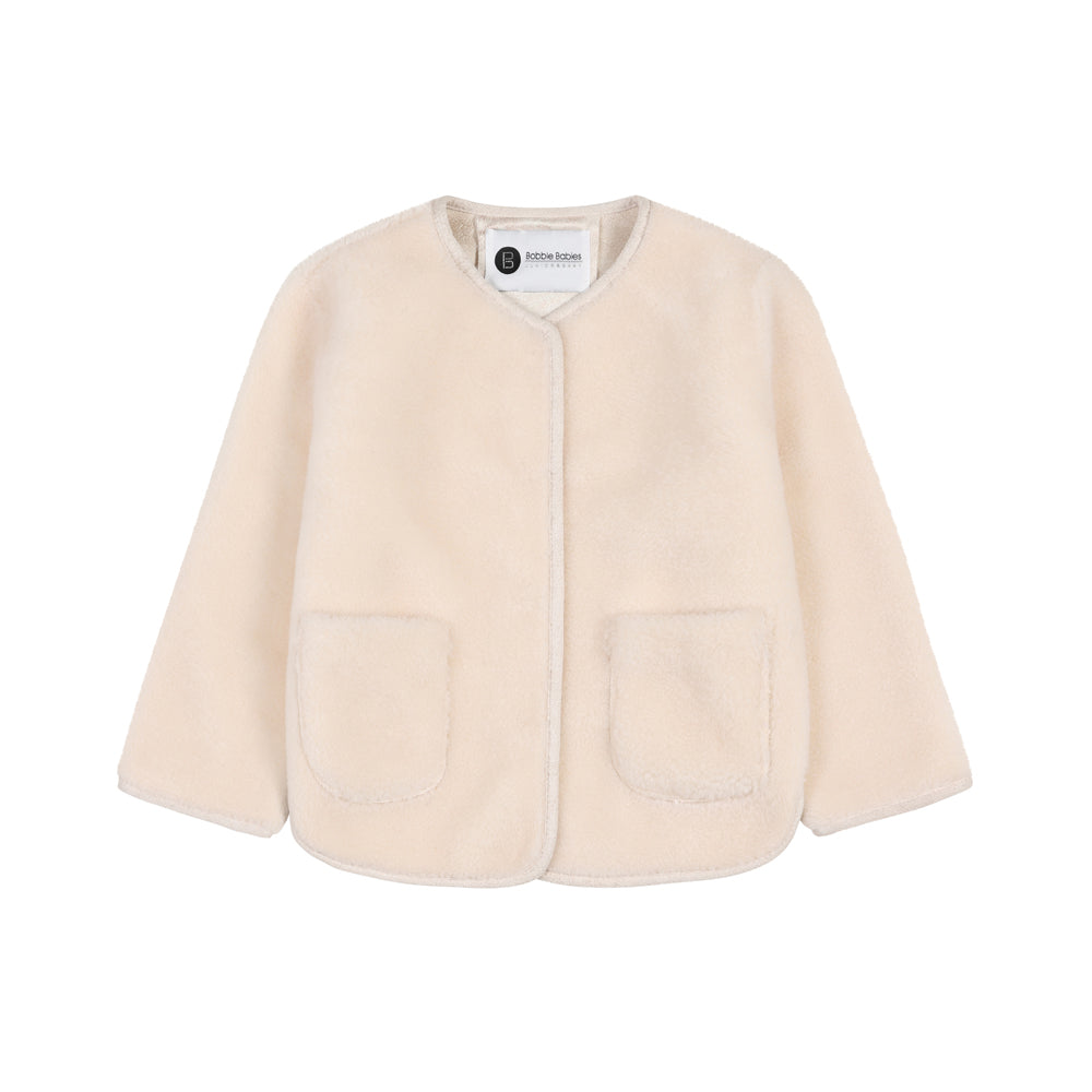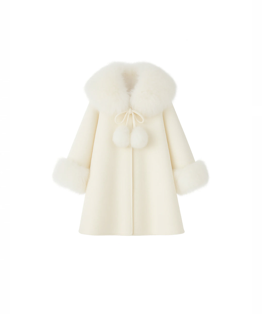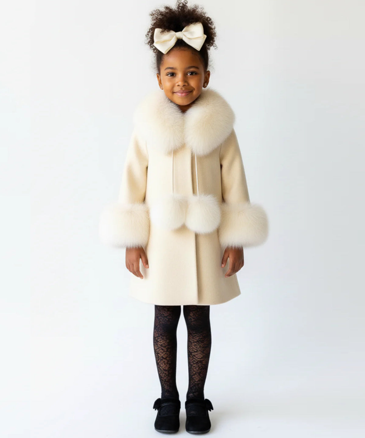 Bobble Babies - Fur Collar Pom Coat Ivory