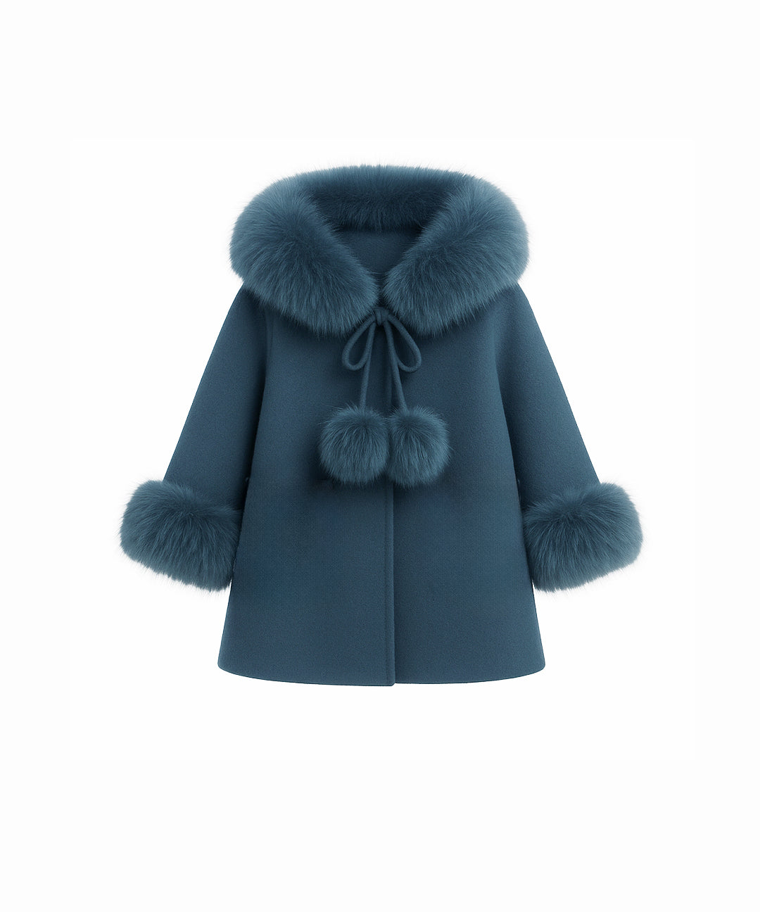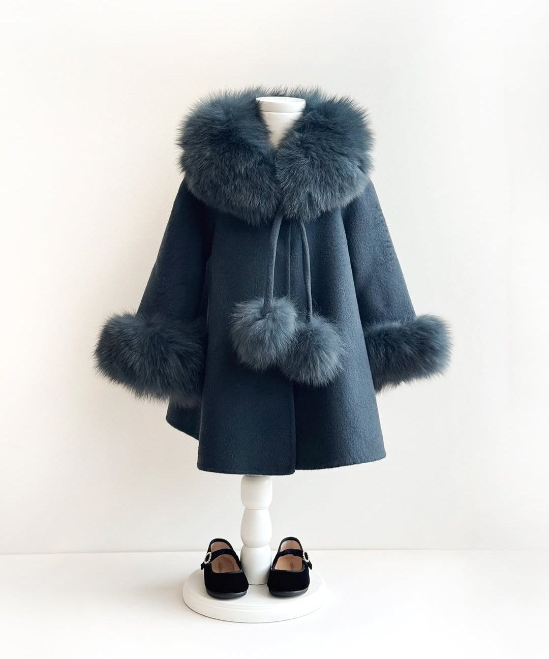 Bobble Babies - Fur Collar Pom Coat Navy