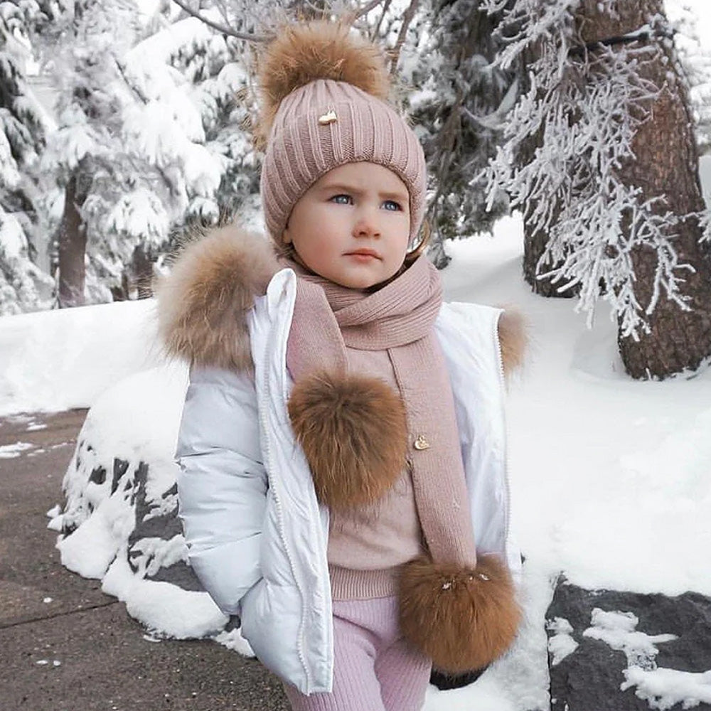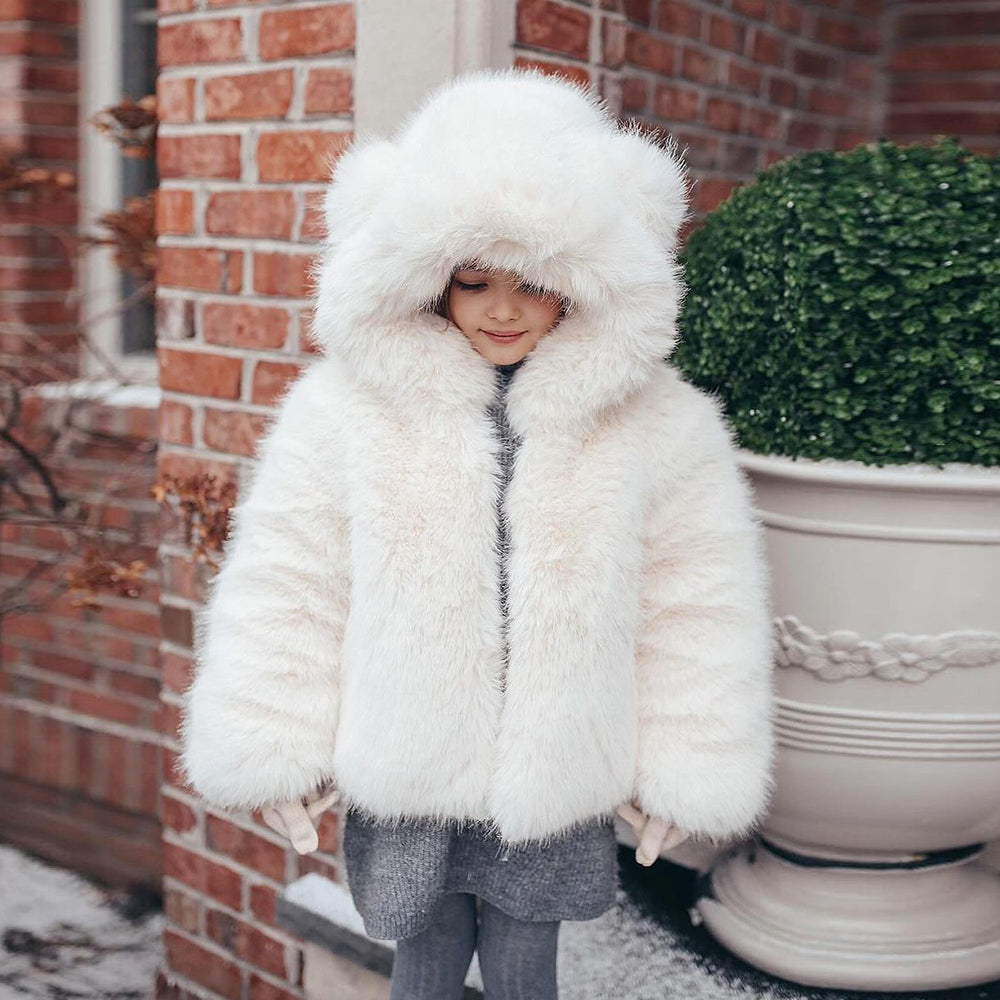 Mi Loves - Luxurious Racoon Fur Trim Snowsuit White With White Fur