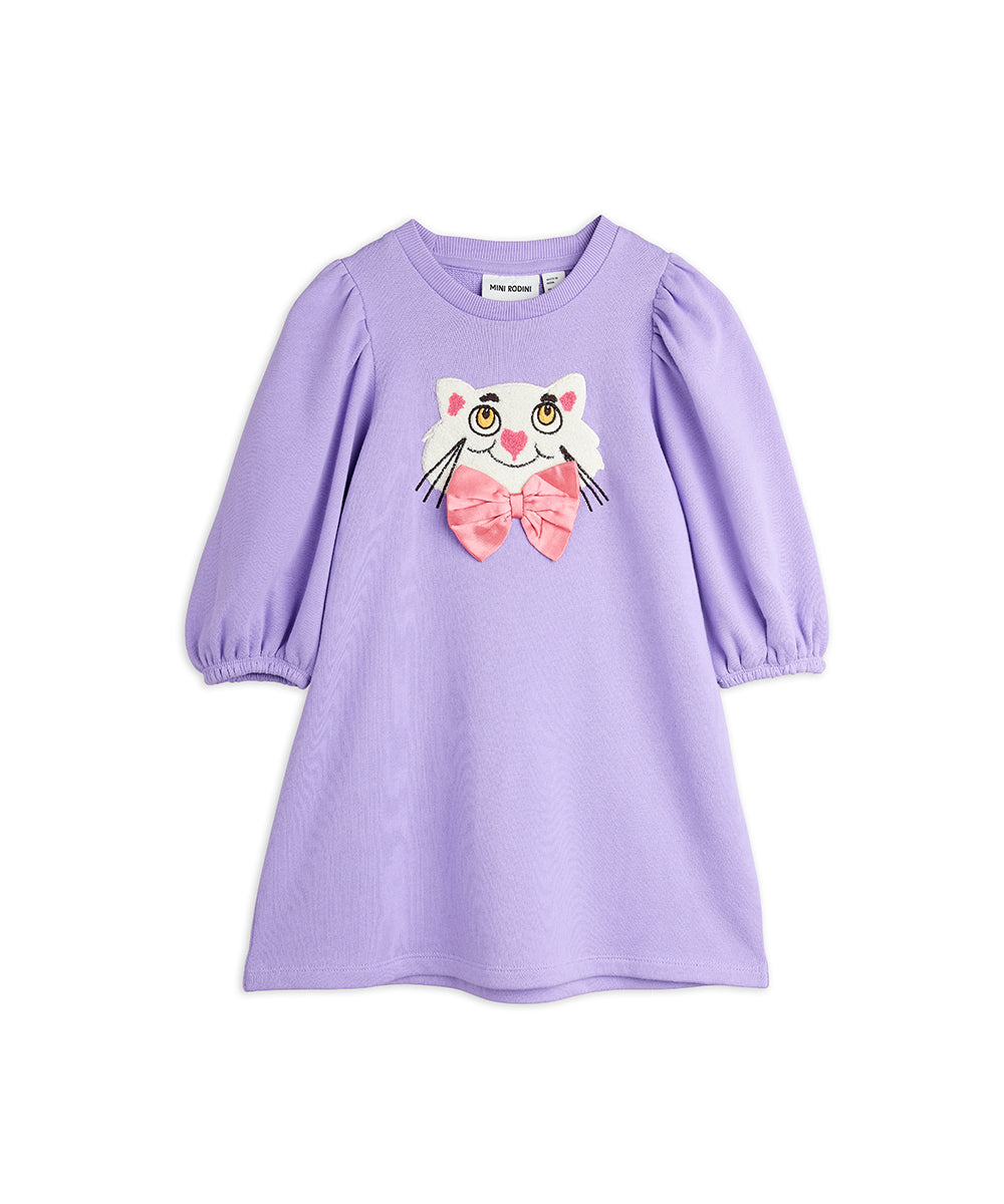 Mini Rodini - Cat With Bowtie Chenille Sweatdress Purple