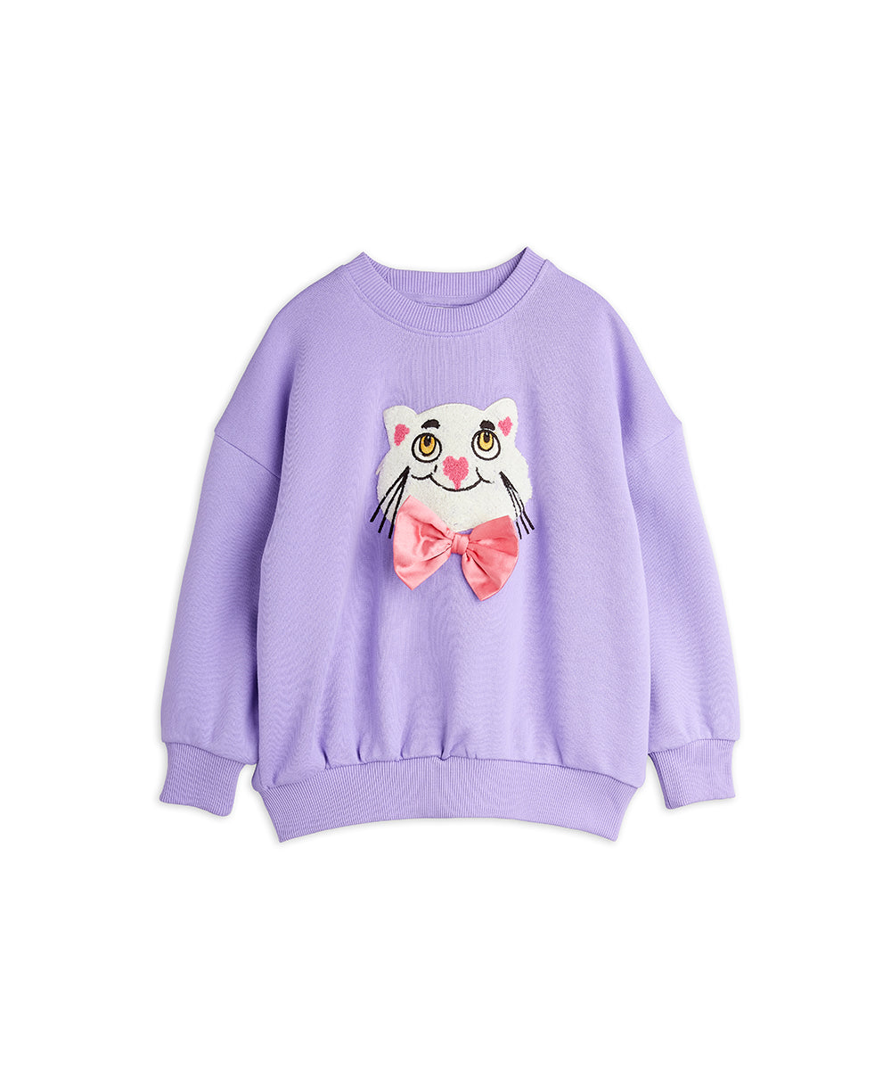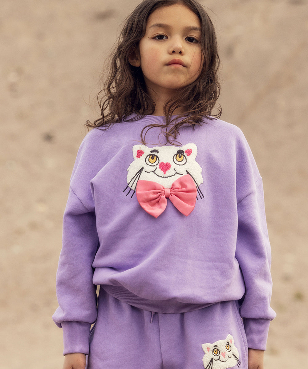 Mini Rodini - Cat With Bowtie Chenille Sweatshirt Purple