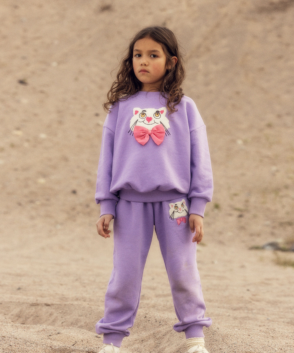 Mini Rodini - Cat With Bowtie Chenille Sweatpants Purple