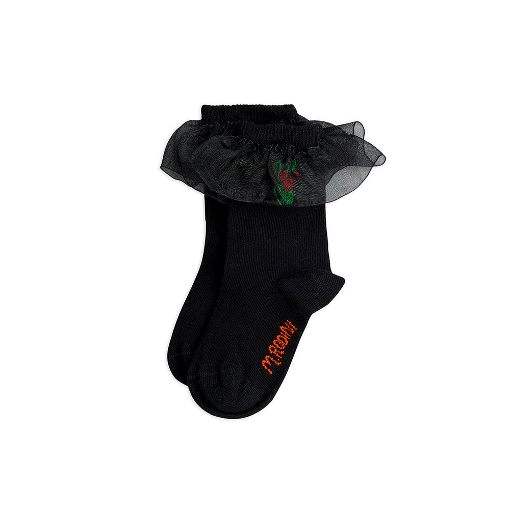 Mini Rodini - Lingonberry Emb Frill 1-Pack Socks Black