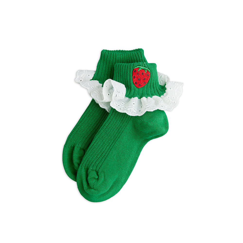 Mini Rodini - Strawberry Emb Lace 1-Pack Socks Green