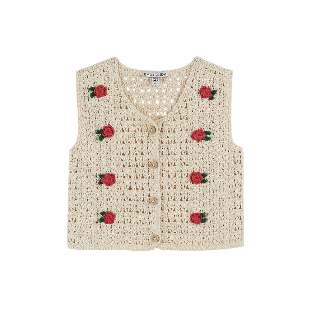 Emile Et Ida - Crochet Sleeveless Cardigan Ecru
