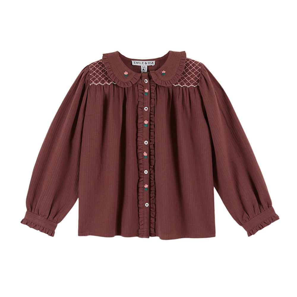 Emile Et Ida - Embroidered Collar Smocked Blo Orchid Bleu