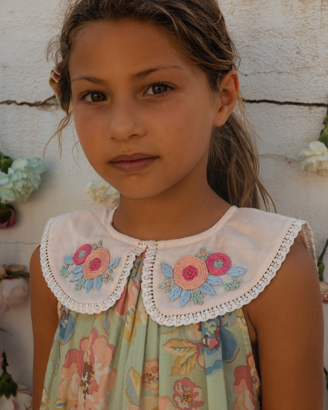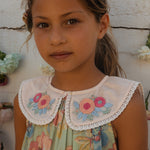 · Statement oversized collar with delicate lace trim and floral embroidery