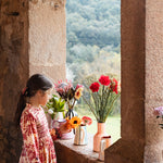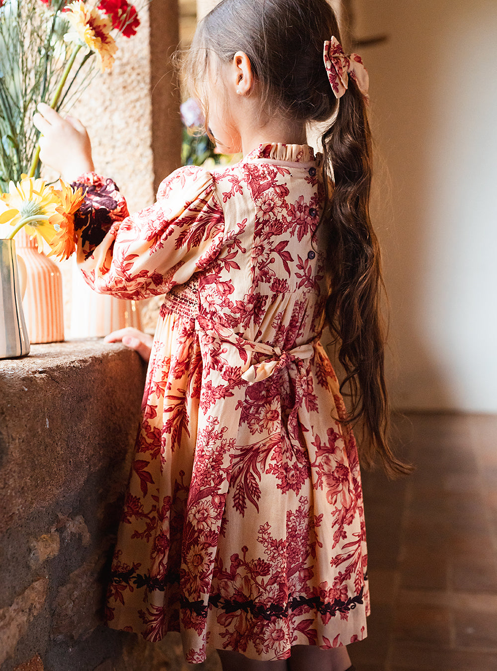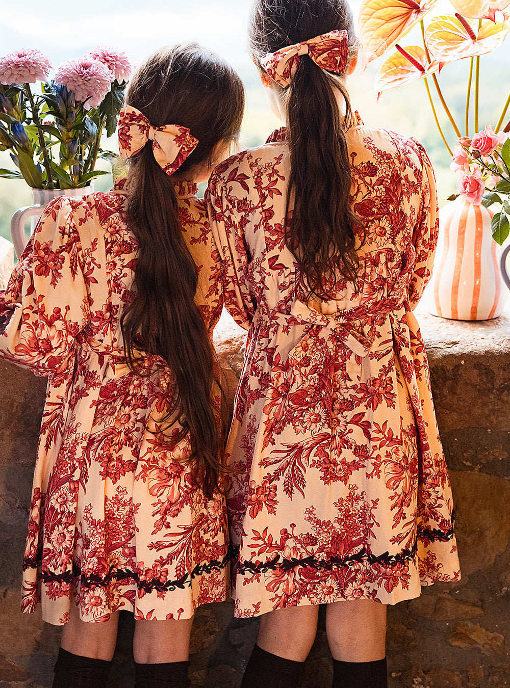 · All-over "Sweet Heart" red floral print for a vintage-inspired charm