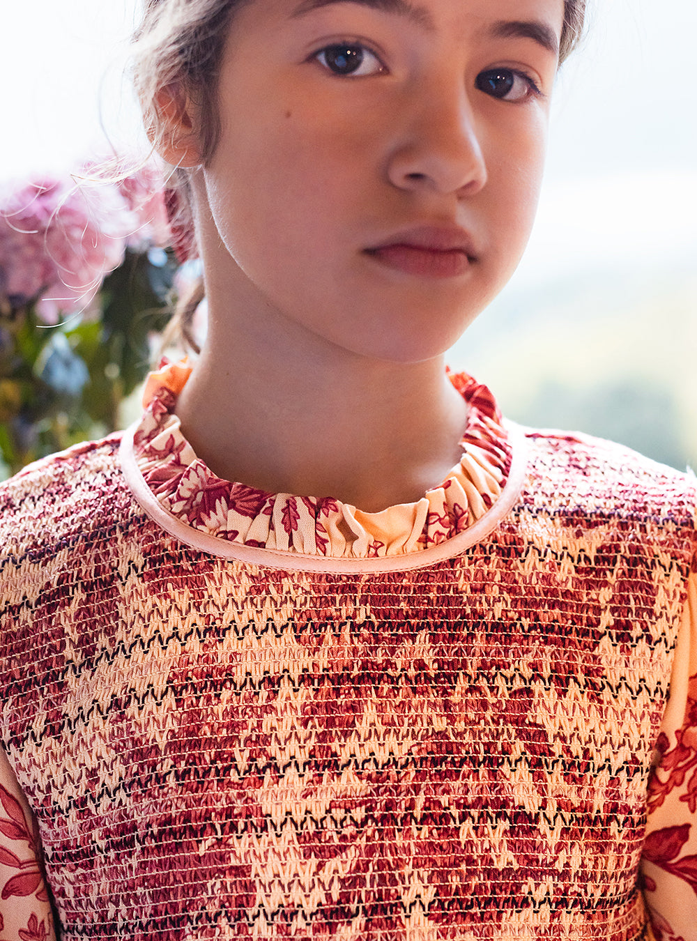 · Decorative embroidery at sleeves and hemline for a refined finish