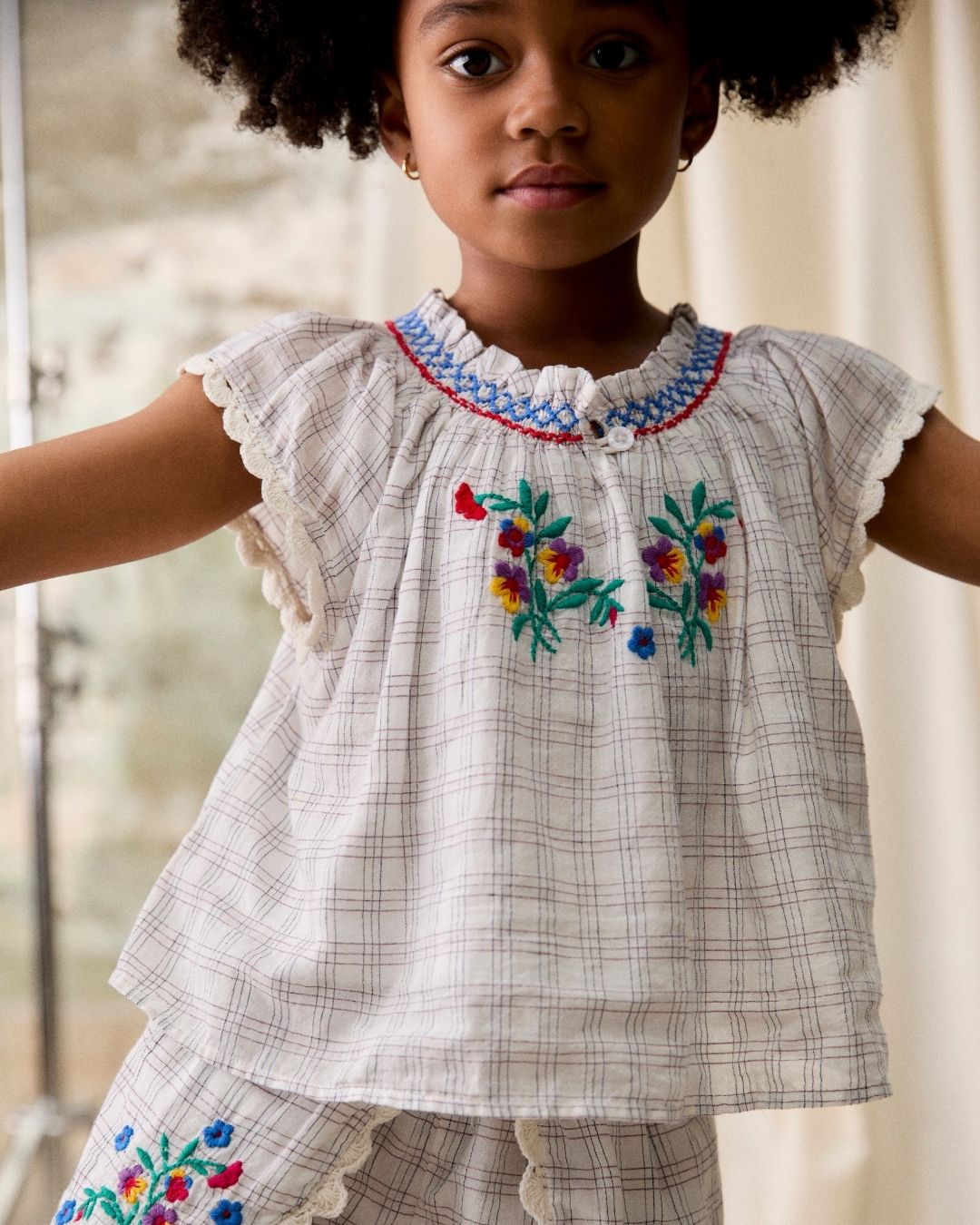 · Lightweight cotton blouse with a soft check pattern