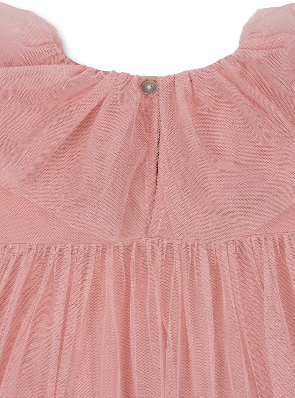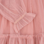 · A dreamy tulle dress in mellow rose with soft puff sleeves