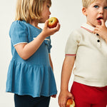 · Soft short-sleeve knit top with a gently flared peplum silhouette