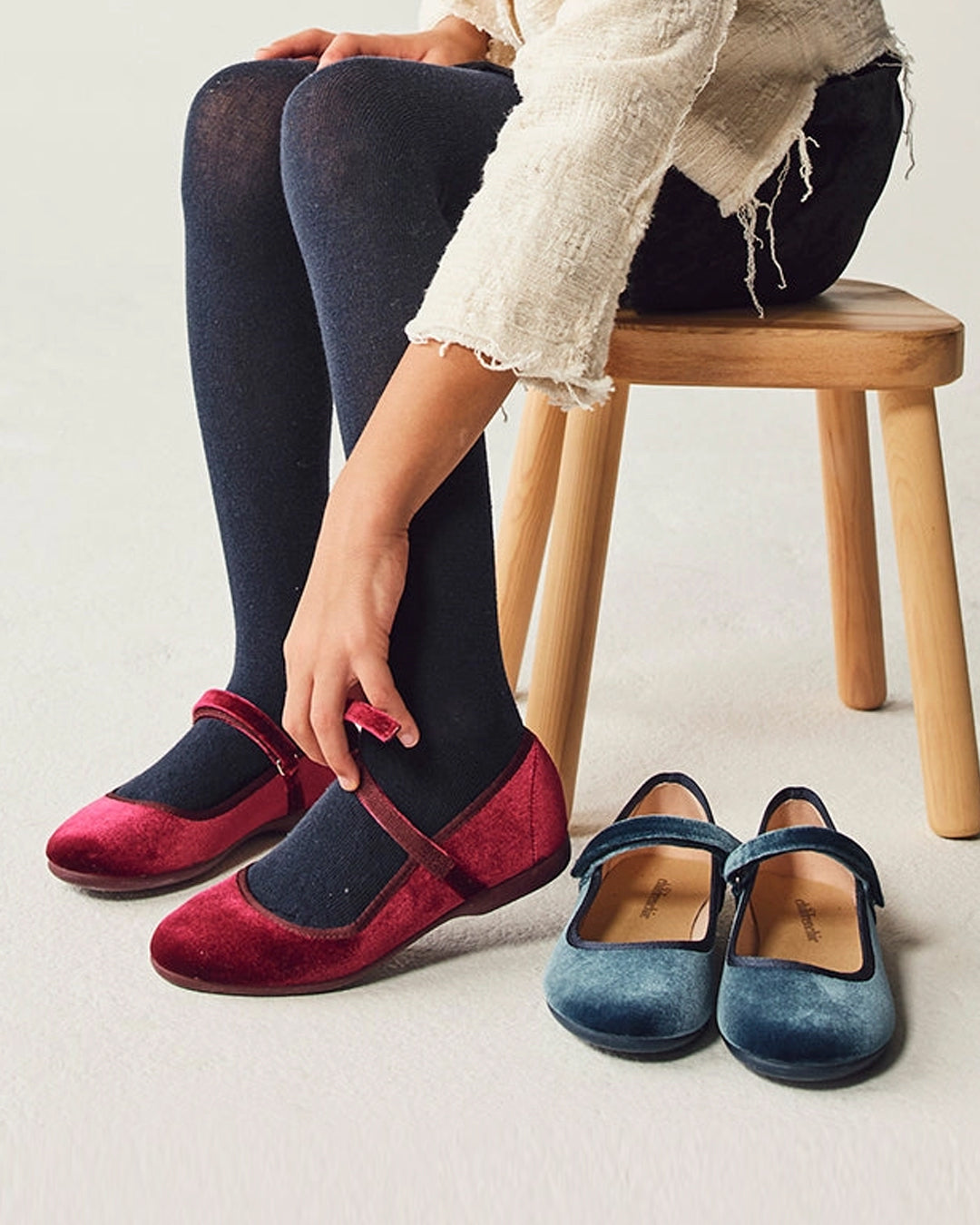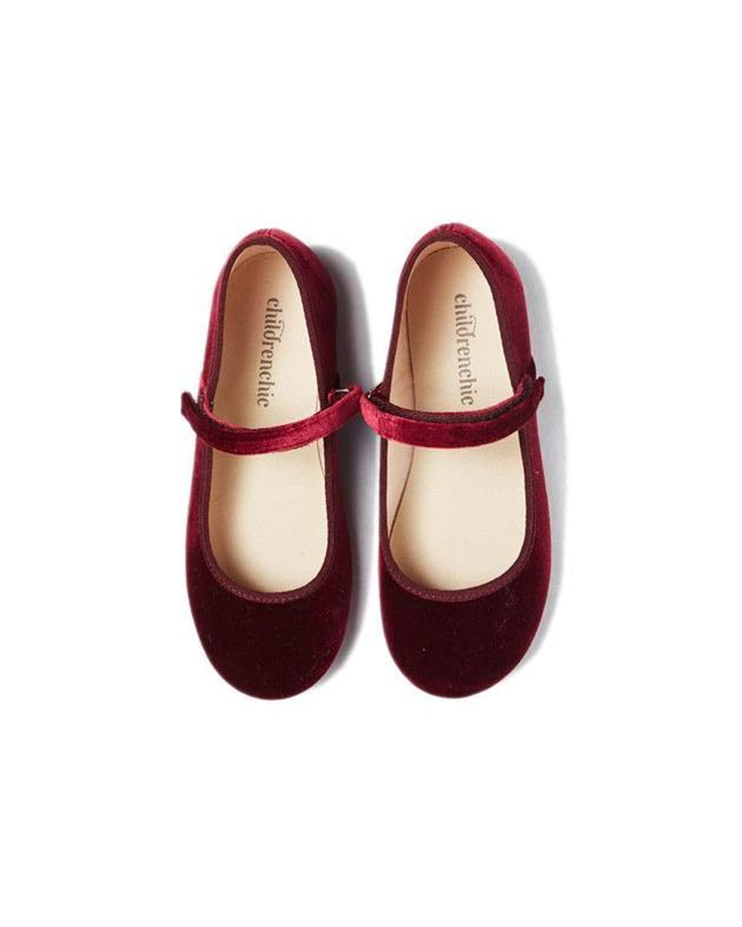 · Classic Mary Jane silhouette in soft bergundy velvet