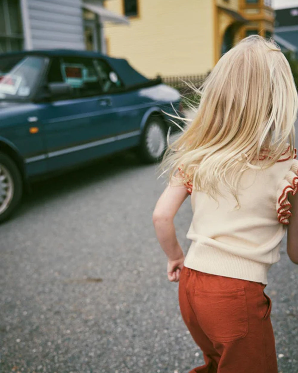· Cropped, slightly fitted silhouette with a ribbed hem