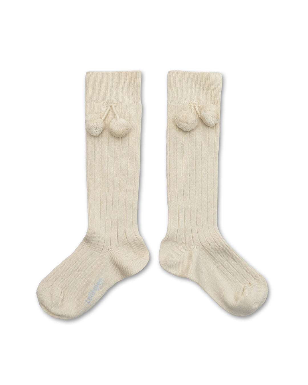 Collegien :: Diane Ribbed Knee High Socks With Pompoms 037