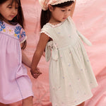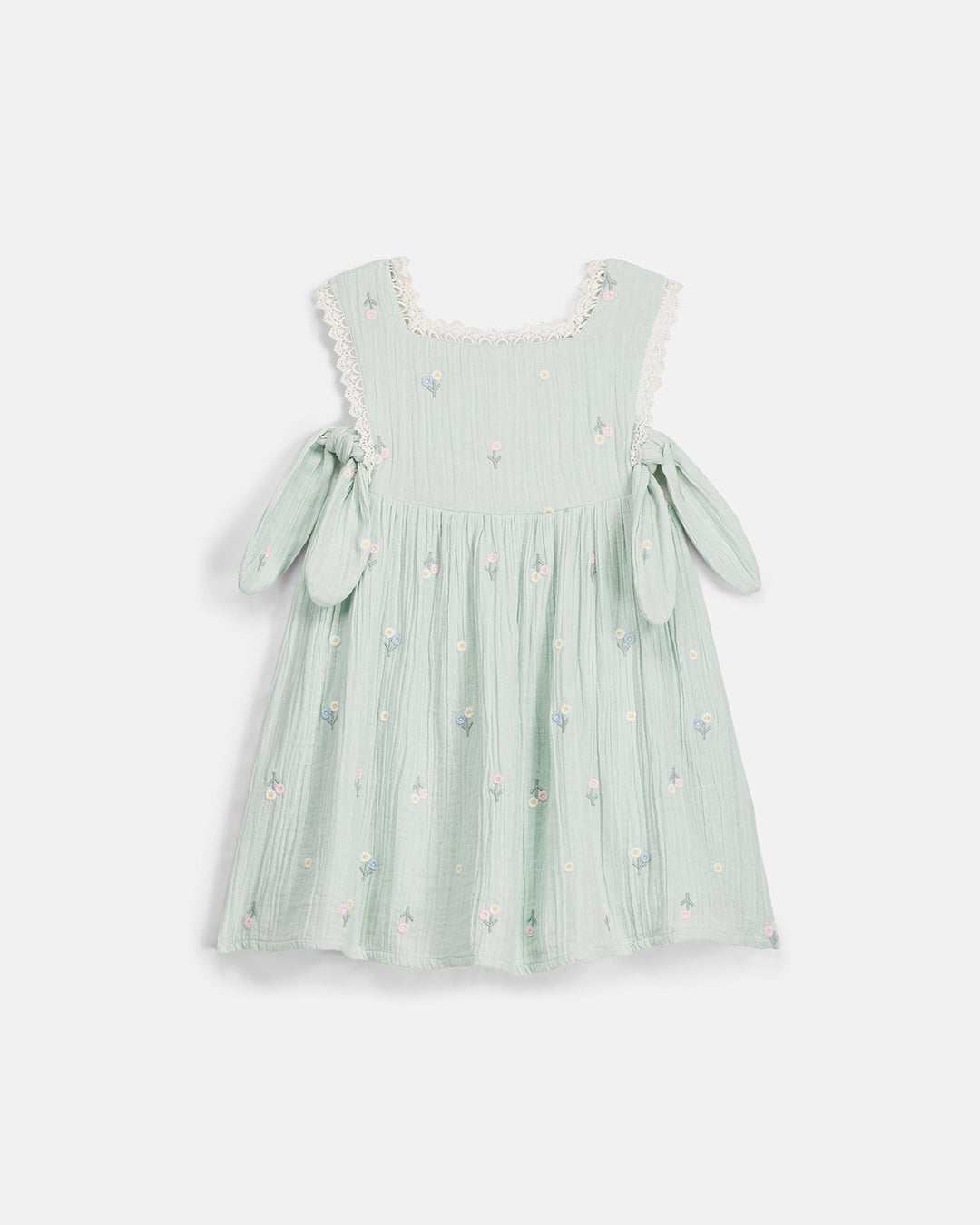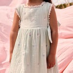 · Soft double gauze cotton with delicate embroidered floral motifs