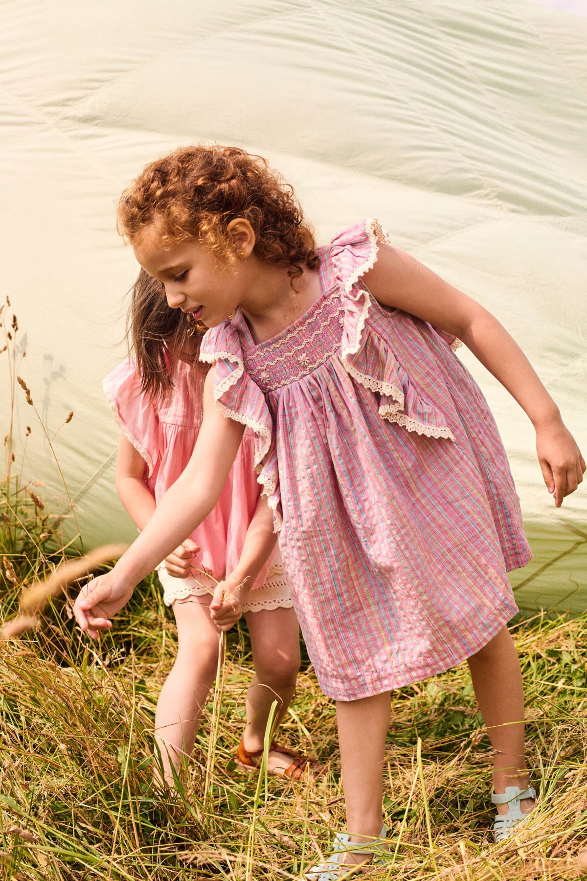 · Smocked bodice with delicate floral embroidery
