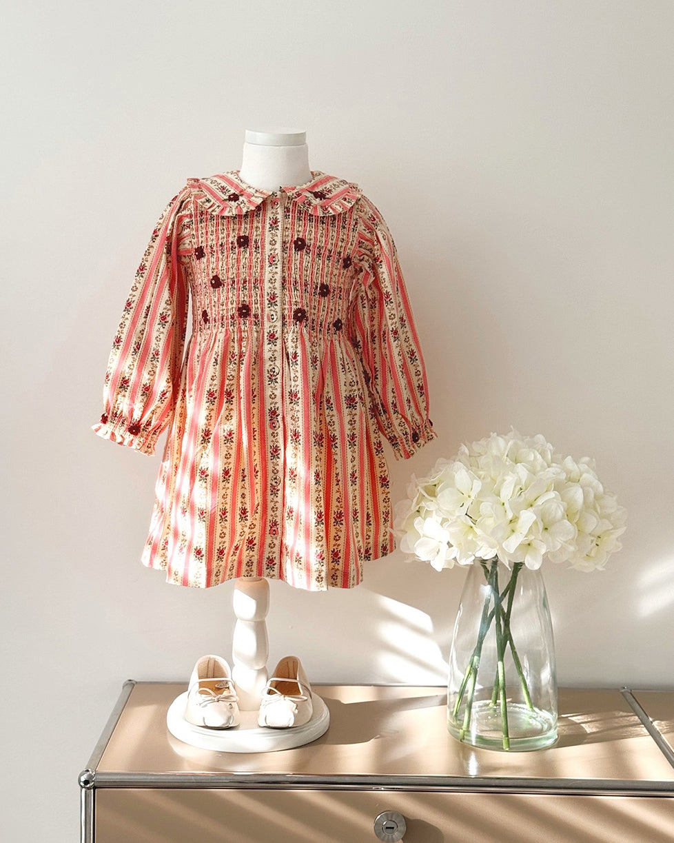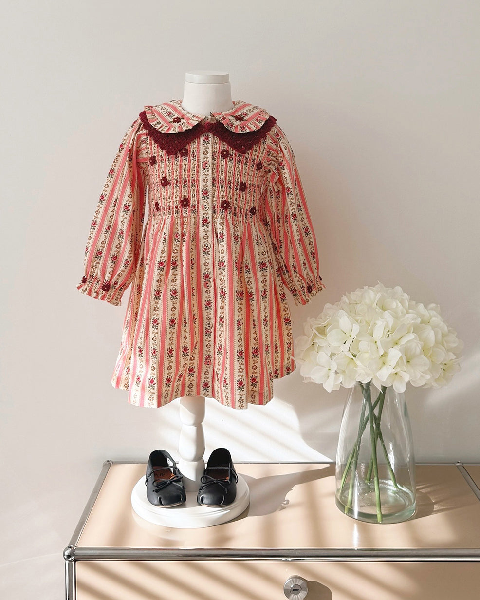 · Bonjour Diary x The Front Shop Exclusive vintage-inspired dress in floral stripe print