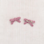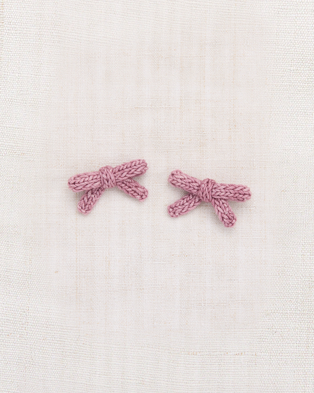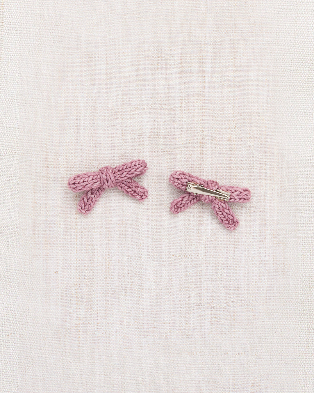 · A set of hand-knit slim bows on alligator clips in Cotton