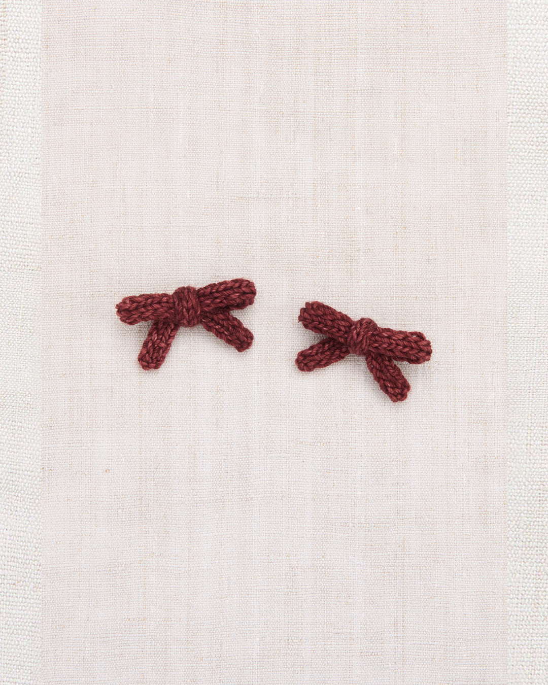 · A set of hand-knit slim bows on alligator clips in Cotton