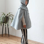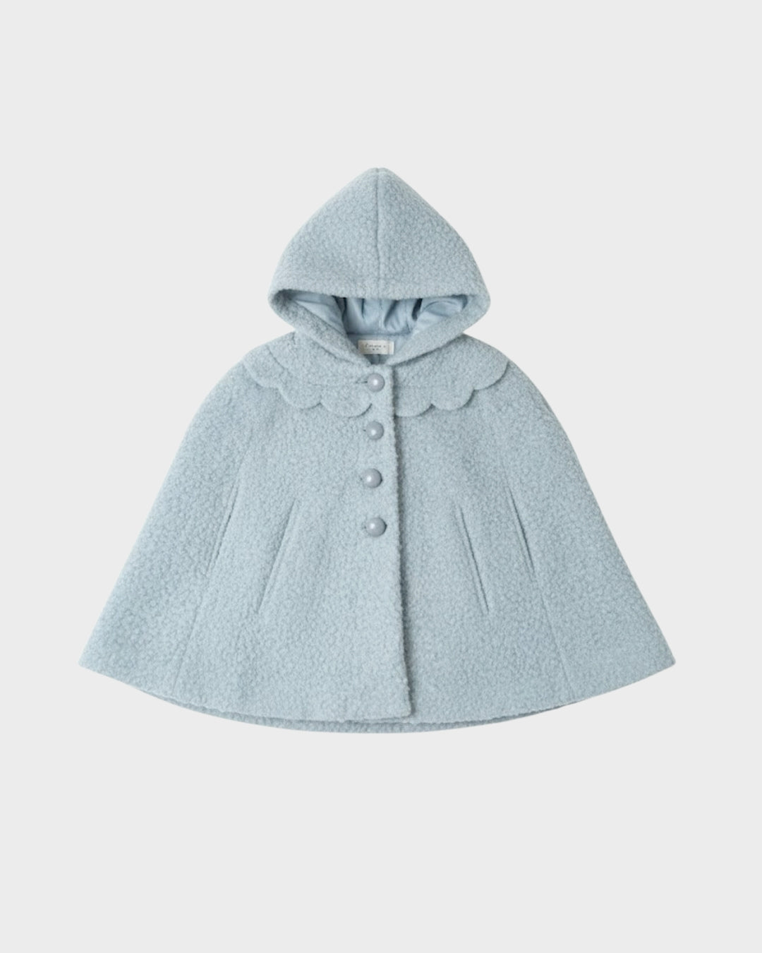 · Cozy hooded cape in soft light blue boucle
