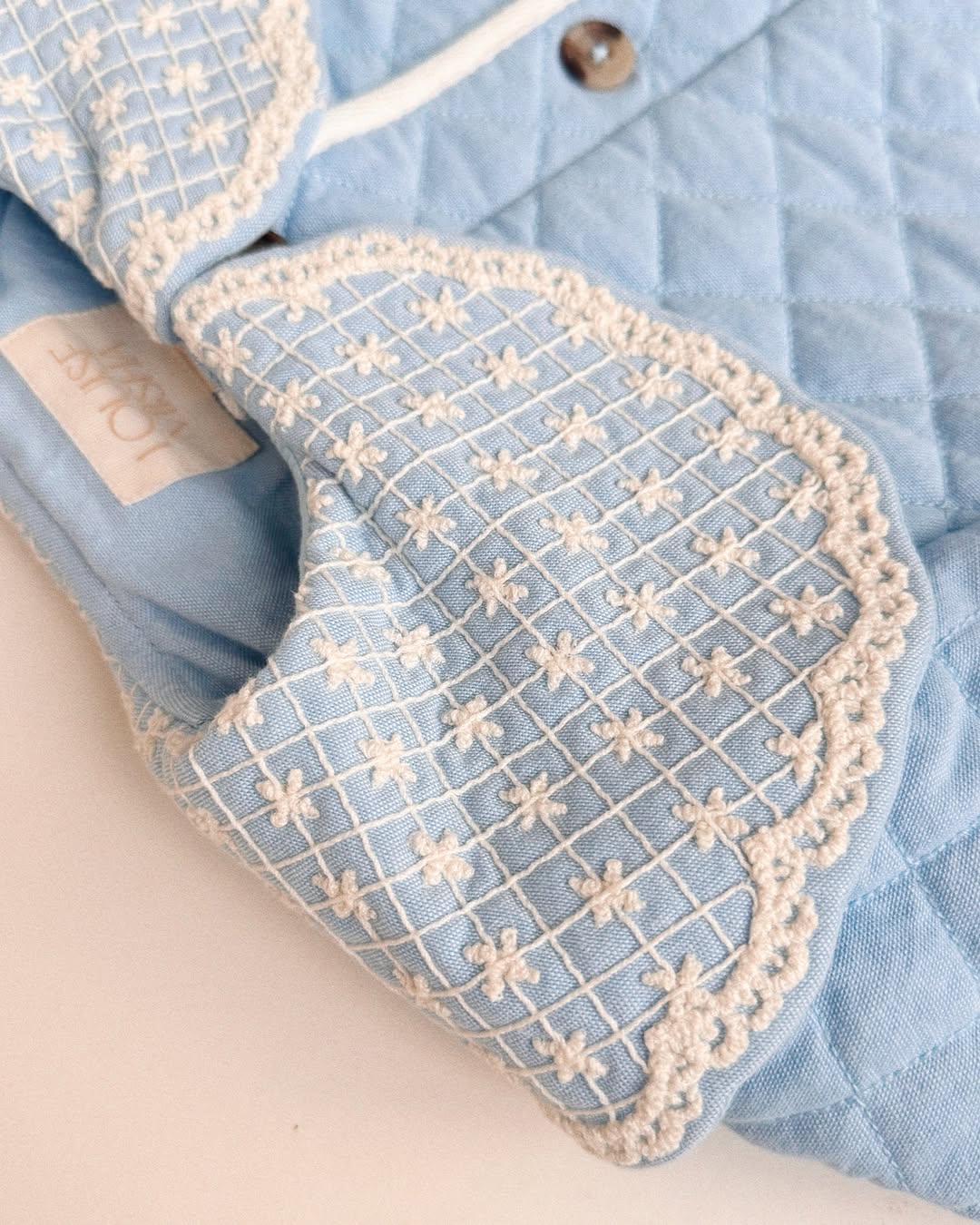 · Delicate embroidered Peter Pan collar