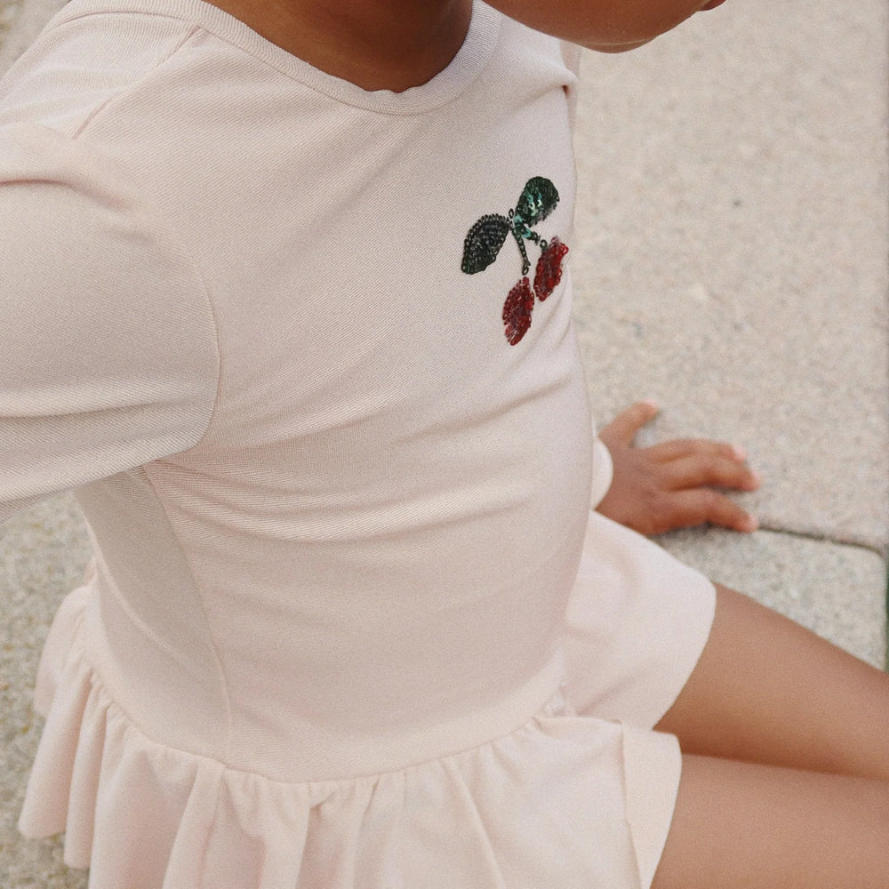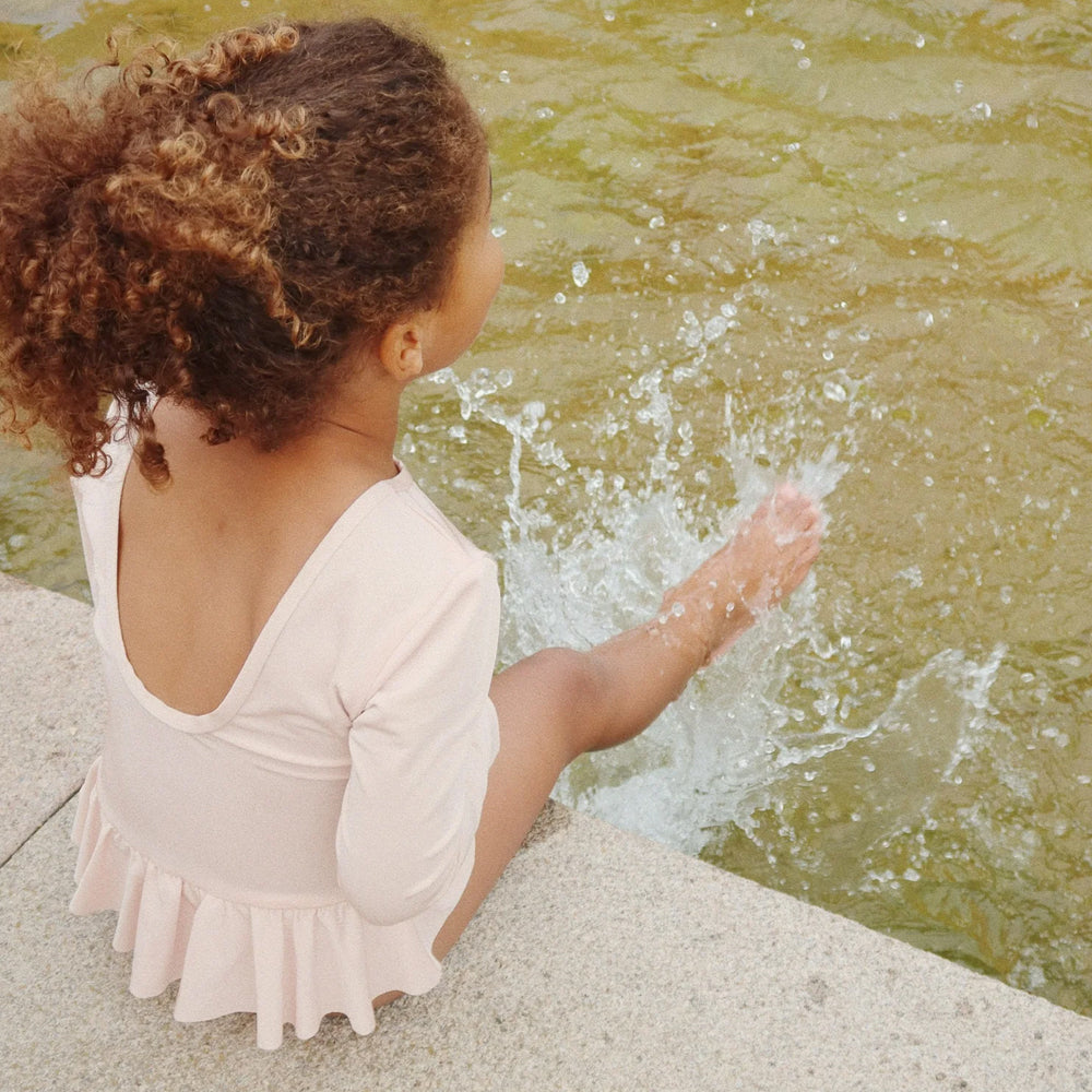 · Long-sleeved swimsuit in a shiny finish with a decorative sequin application in front and a low scoop back.