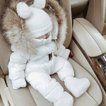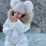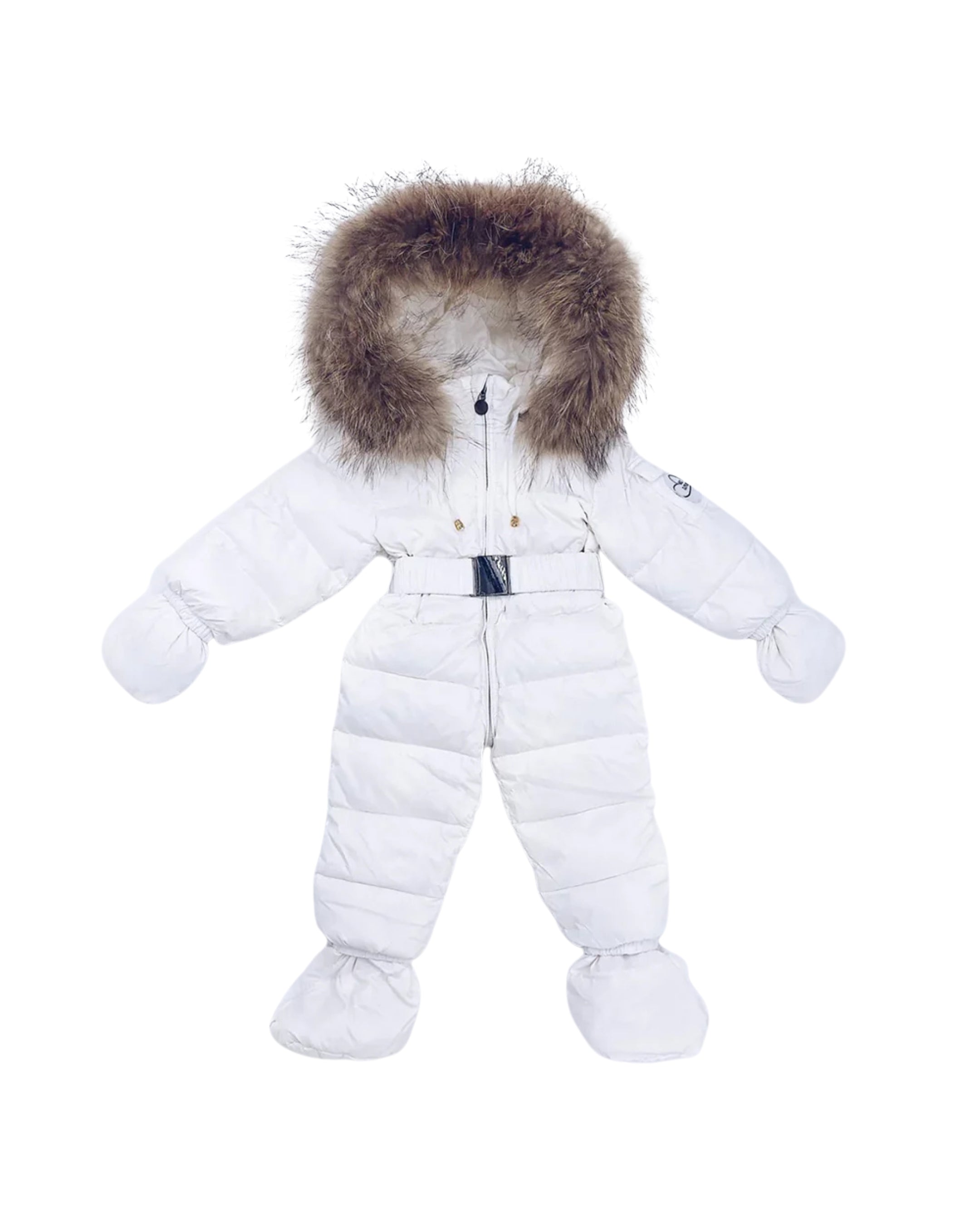 [Pre - Order] Mi Loves :: Luxurious Racoon Fur Trim Snowsuit White With Brown Fur