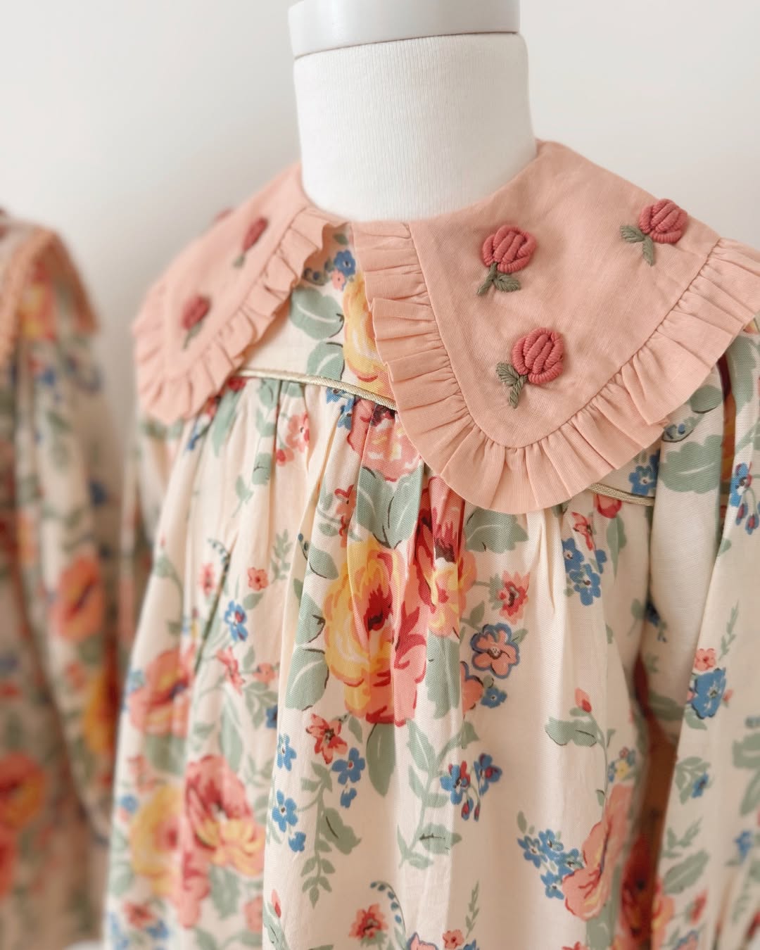 · Delicate embroidered collar with ruffle trim