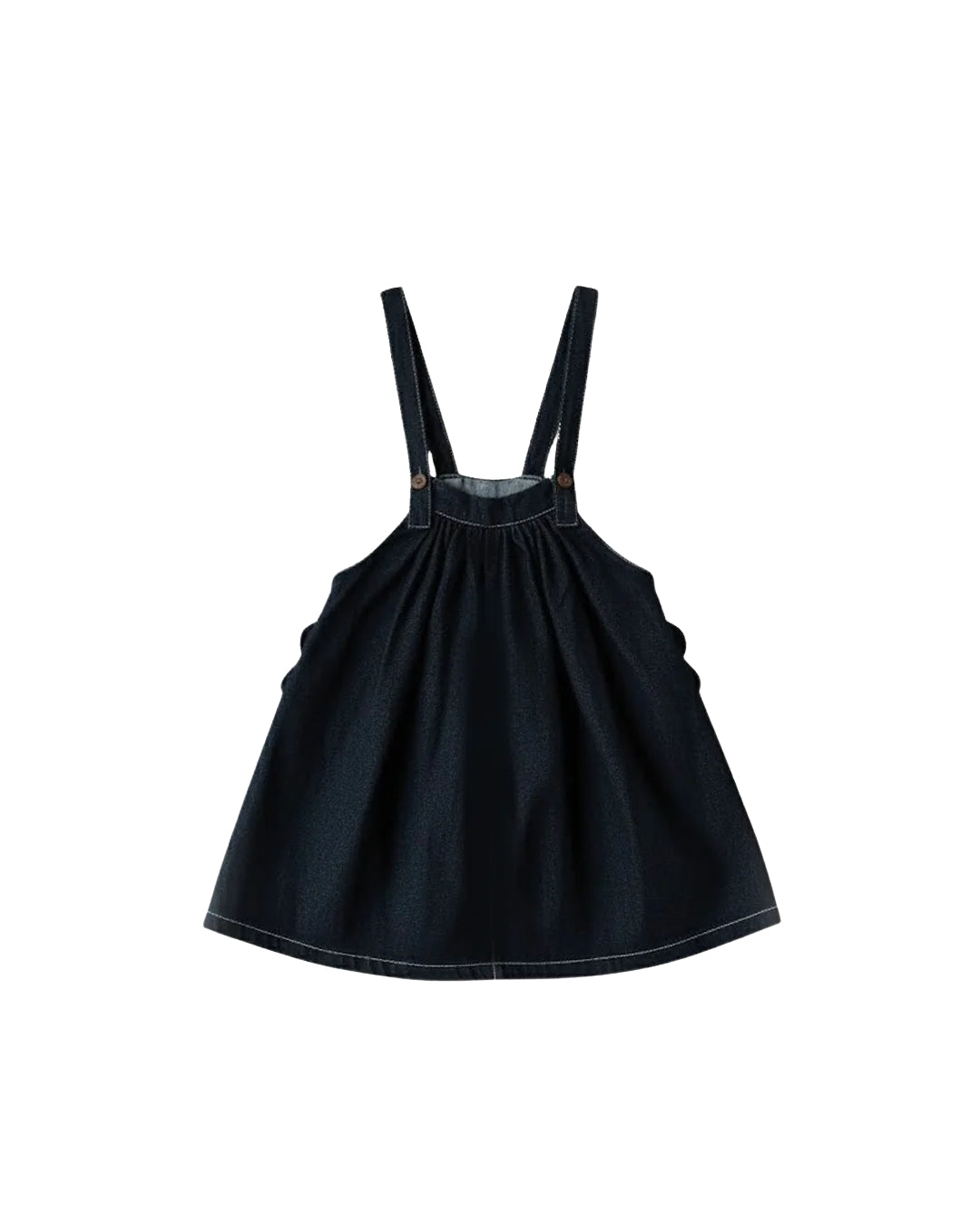 · A charming denim suspender skirt with a softly gathered waist