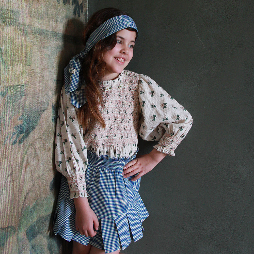 Bonjour Diary :: Pleated Skirt With Tie Scarf Vichy Blue