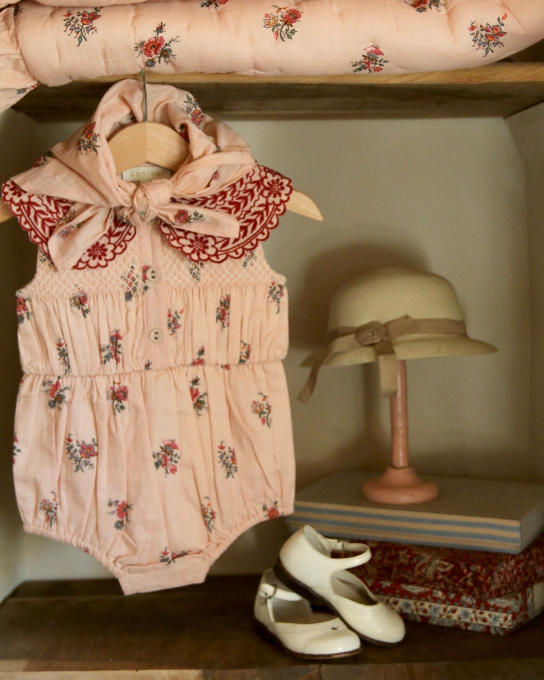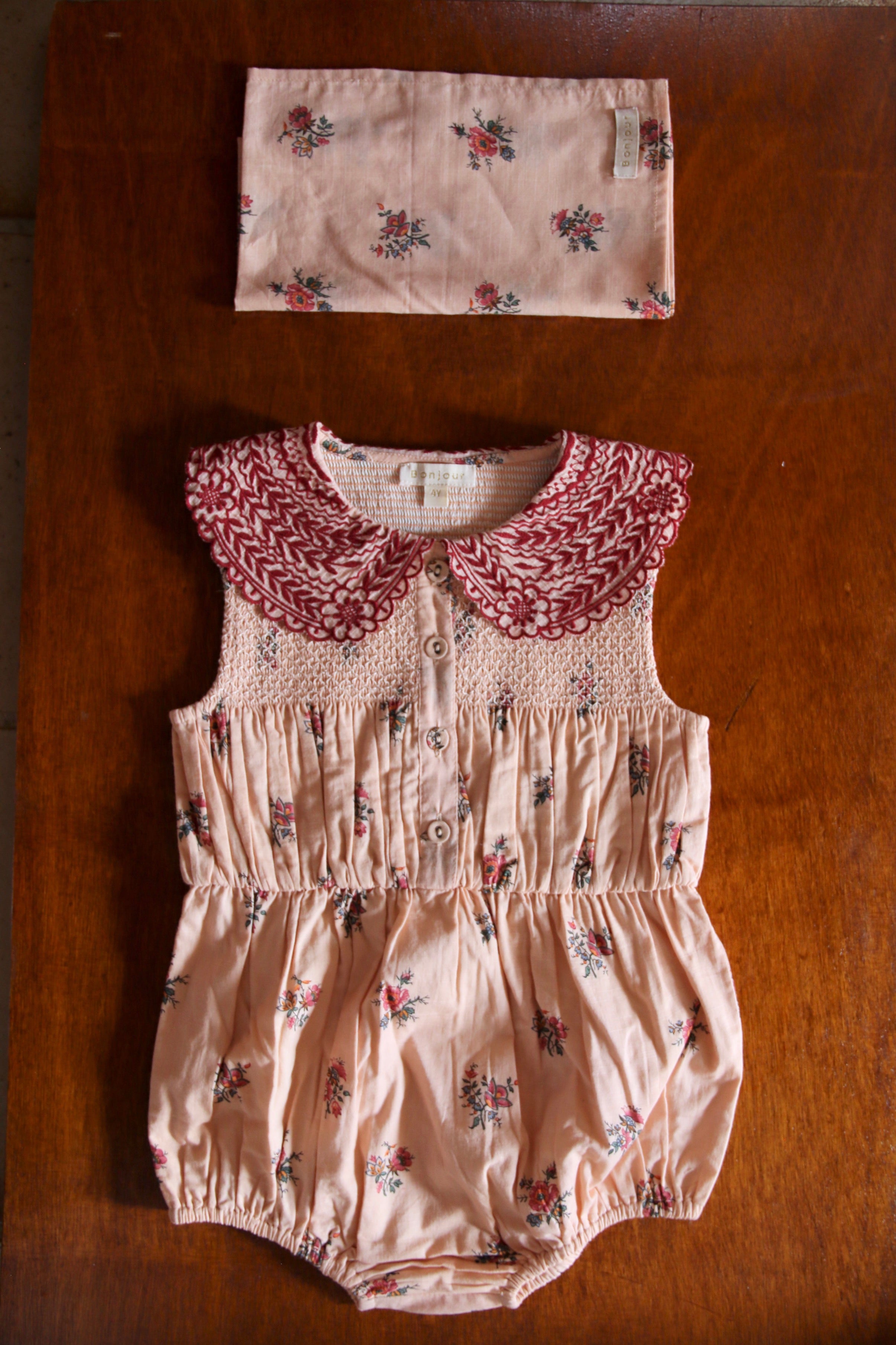 Bonjour Diary - Romper With Scarf Pink Garden Flowers Print