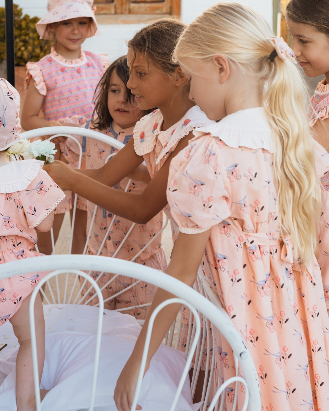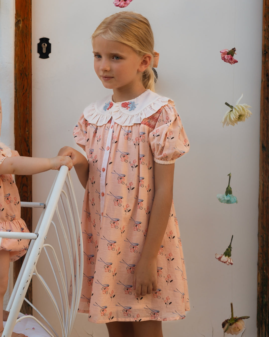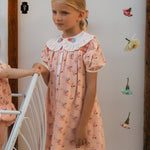 · Vintage-inspired dress in a soft blush bird print