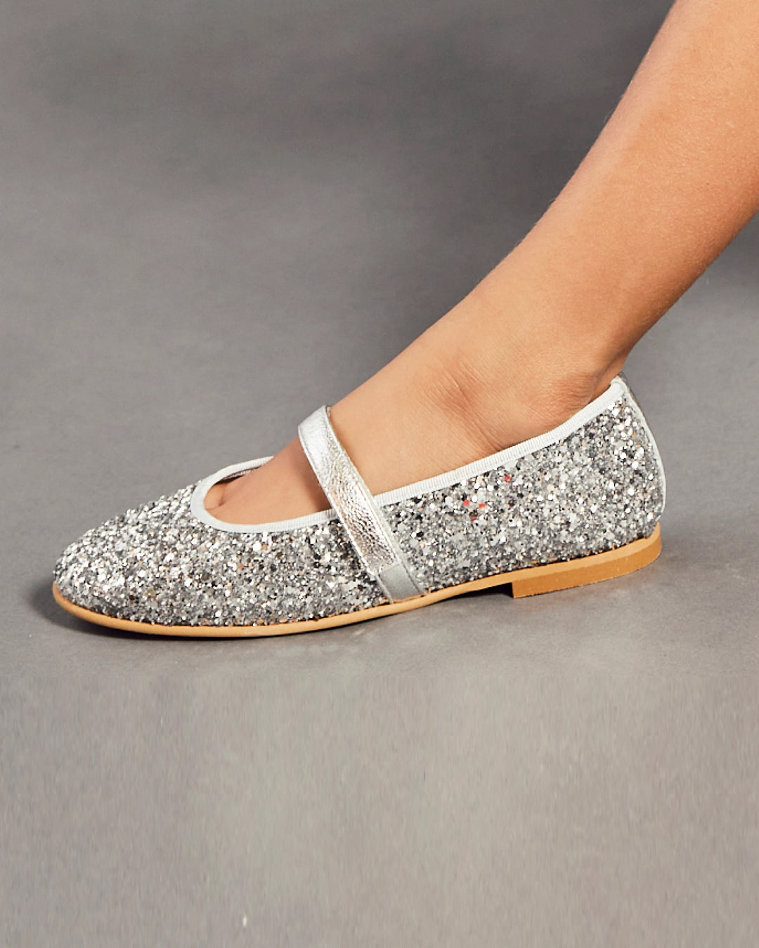 · Classic Mary Jane silhouette covered in sparkling silver glitter