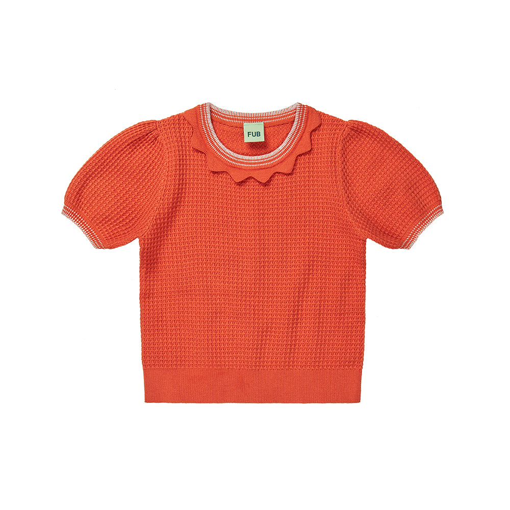 · Structure tee is designed with short sleeves, a knitted lace detail with contrast color at neckline, and rib hems.