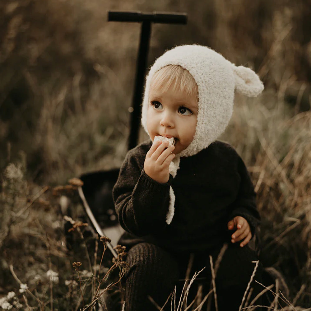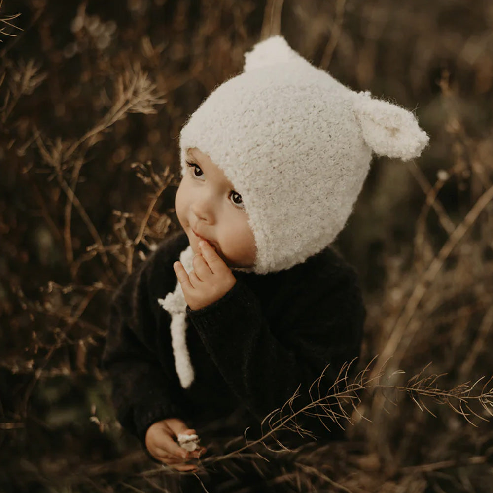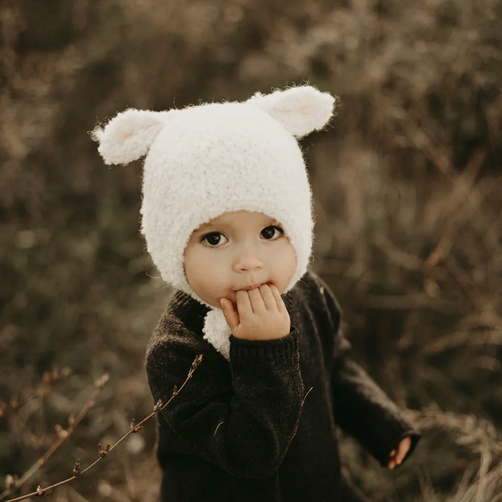 The hat is tieded under the neck, covers the ears and is very flexible.
