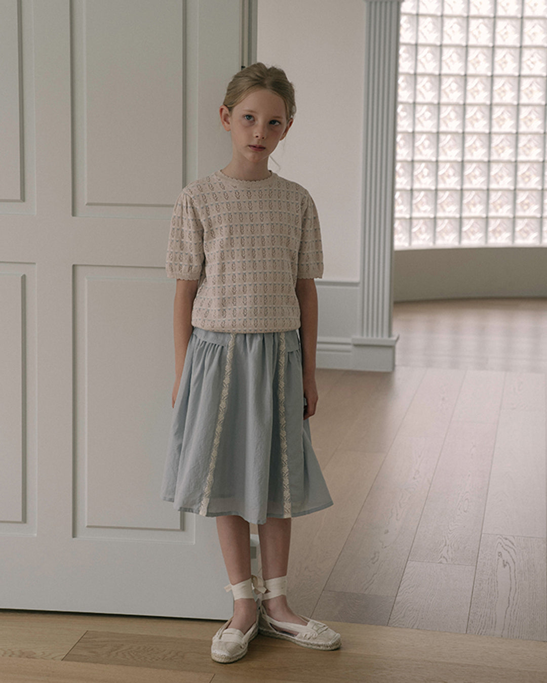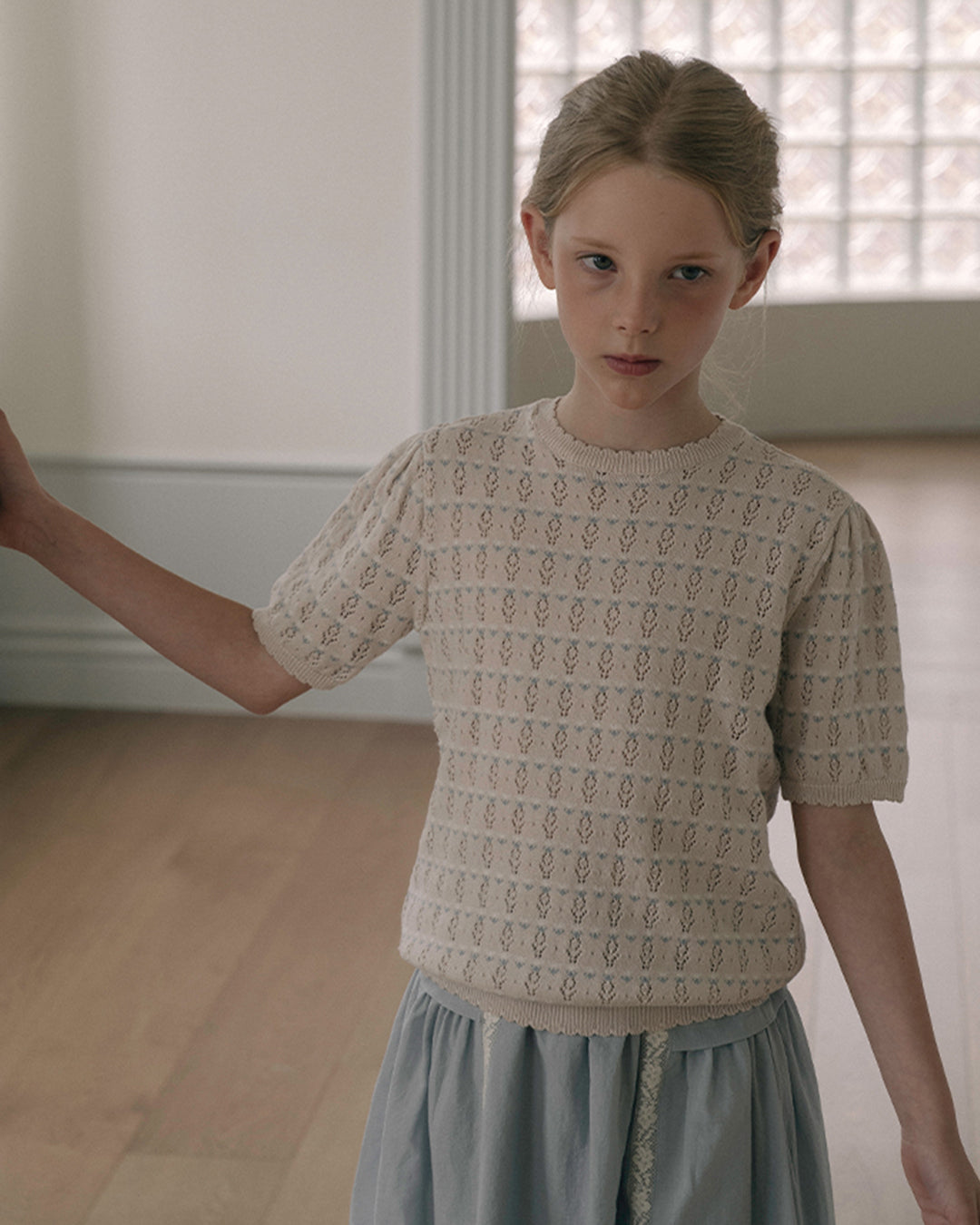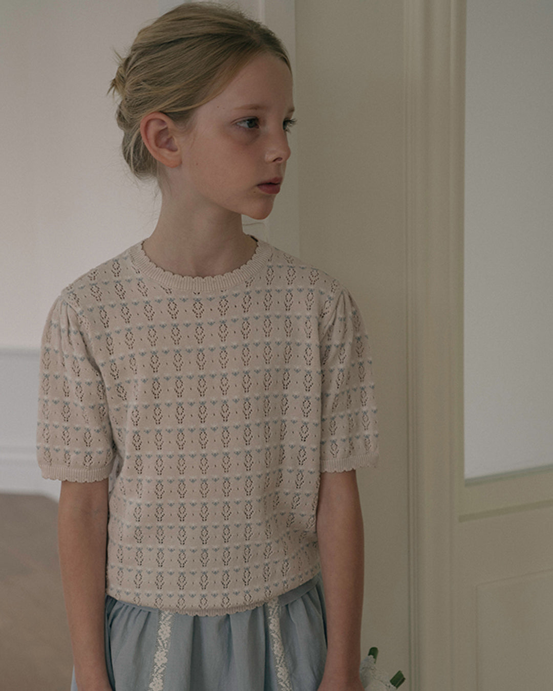 · Soft pointelle-knit short sleeve top