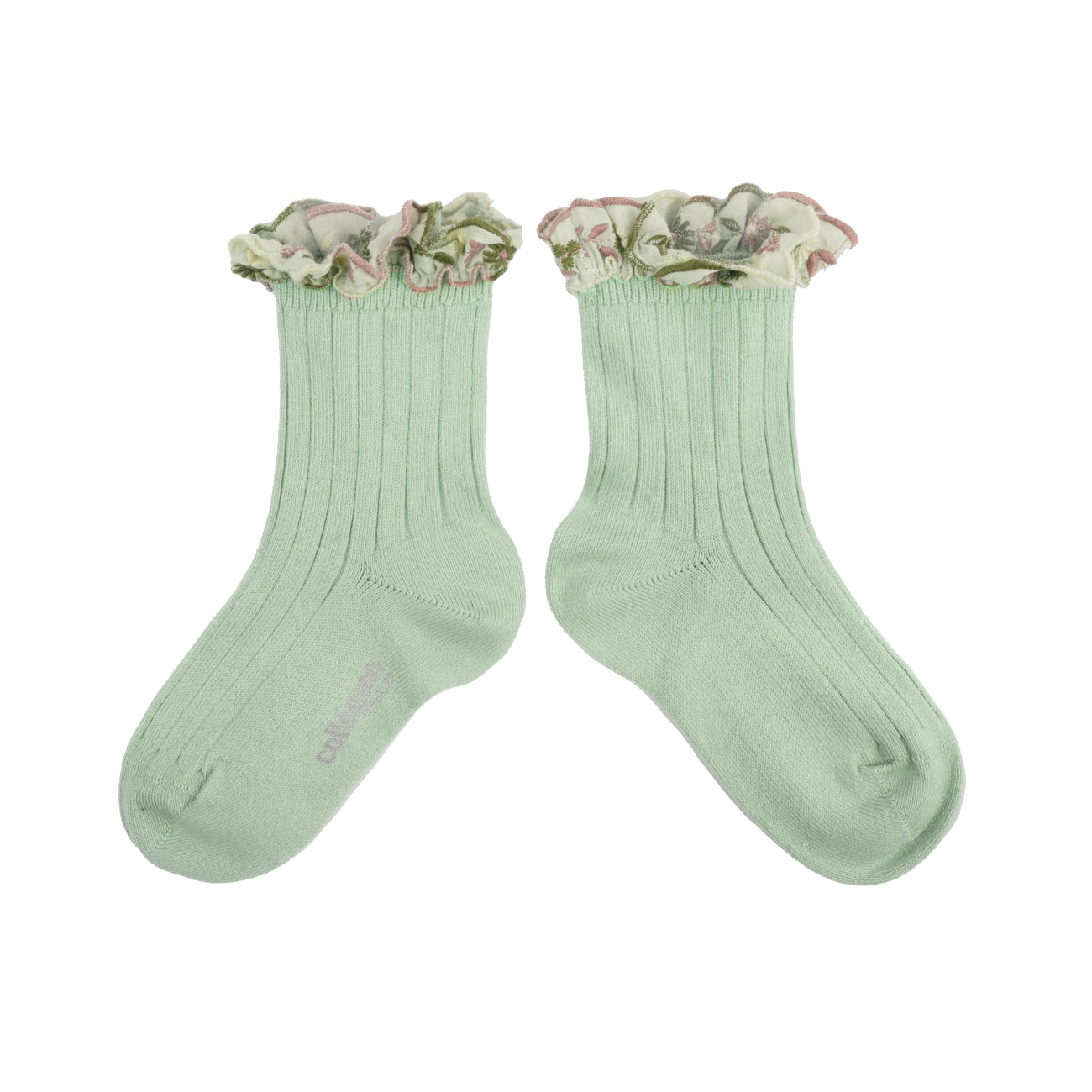 Collegien :: Anemone Embroidered Ruffle Ribbed Ankle Socks 251